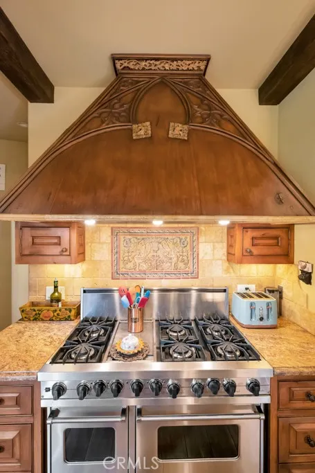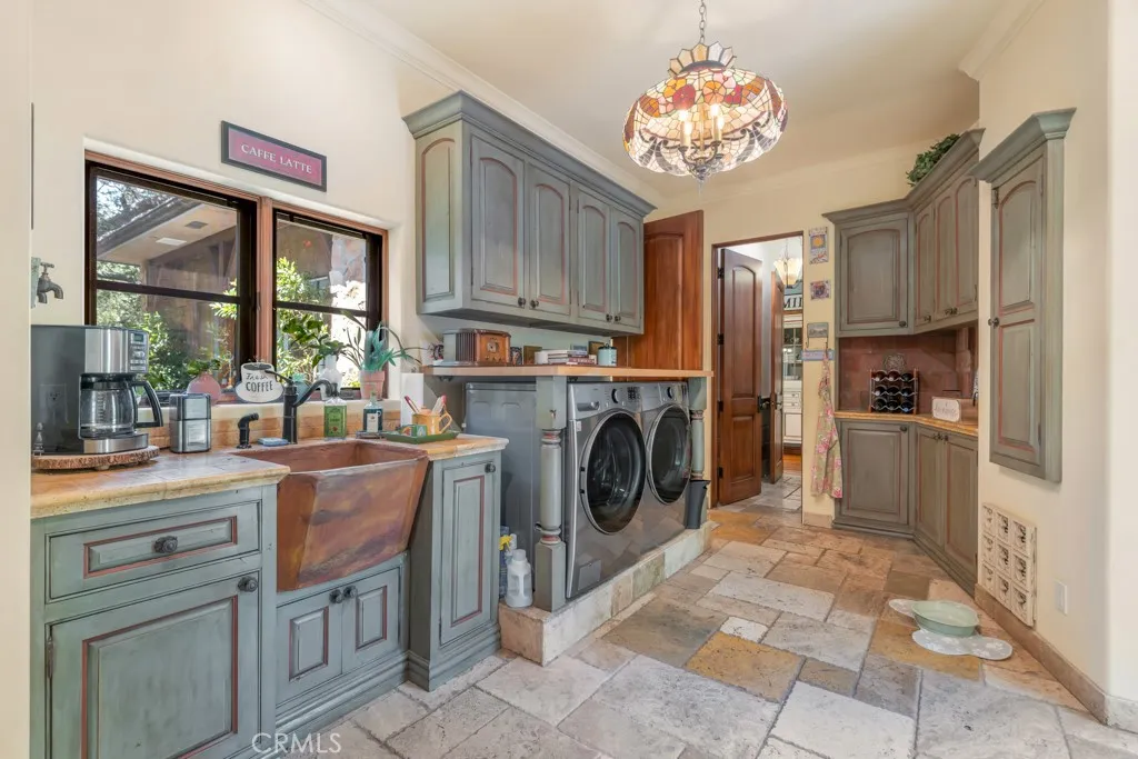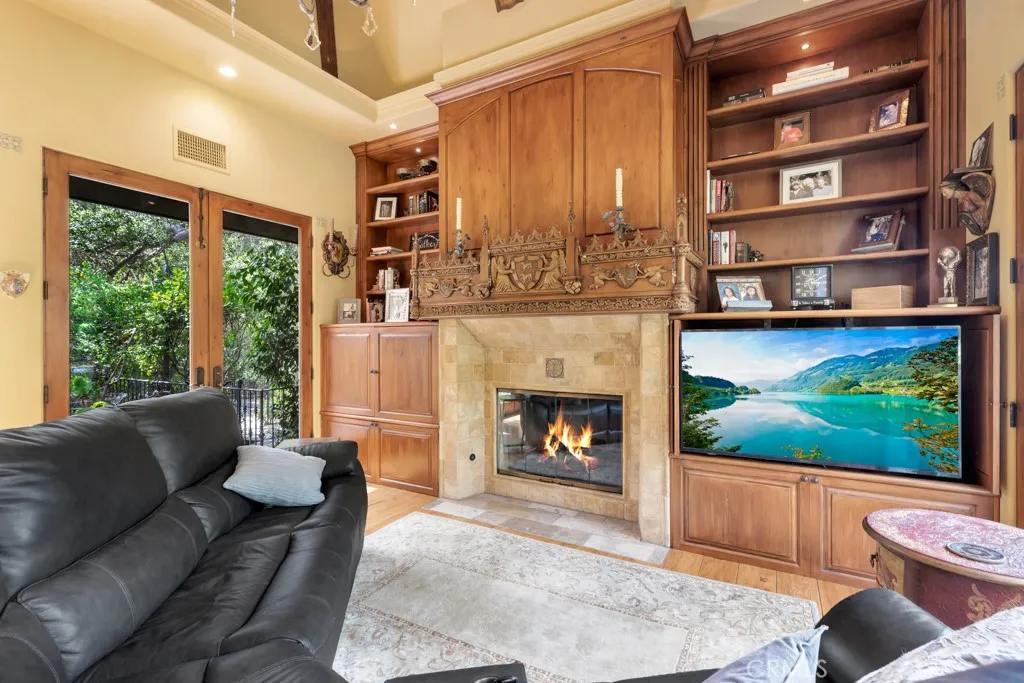 A meandering manmade creek flows through the property, creating a serene backdrop for multiple outdoor living spaces designed for both intimate evenings and grand gatherings. Every detail of this 3,000 sq. ft. residence, reflects artistry and craftsmanship—its stone exterior evokes the romance of old-world European estates, while its interiors blend warmth, sophistication, and comfort.