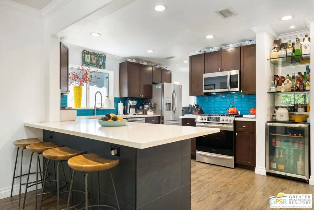 Welcome to The Mesa, a storied residential enclave nestled at the base of the majestic San Jacinto Mountains in South Palm Springs. This historic neighborhood boasts an eclectic mix of architectural styles that reflect the rich evolution of our city, and this home stands as a quintessential example of 1940s Spanish Colonial charm, thoughtfully updated for today’s modern living. Step inside to discover a light-filled open-concept living, dining, and kitchen area, perfect for entertaining or relaxing in style. Upgrades include a newer central AC/HVAC system plus individual mini-split units in each of the three bedrooms, offering customizable climate control throughout the home. The kitchen features a spacious walk-in pantry with a second refrigerator and a stacked washer/dryer for added convenience. Behind a gated driveway, this 8,276 sq ft lot offers rare privacy with tall, lush greenery enclosing the serene outdoor space. Enjoy off-street parking, gas fire pit, and a sparkling pool with a covered lounge area, ideal for year-round desert living. With upgraded electrical, plumbing, and gas lines already in place, this move-in ready home is the perfect blend of classic style and modern comfort. Whether you’re searching for a full-time residence or a weekend retreat, this tranquil oasis in The Mesa is ready to welcome you home.