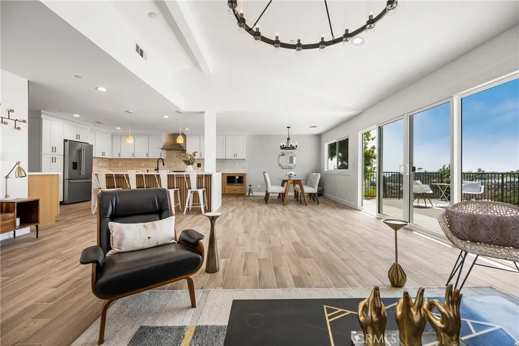 The open floor plan centers around a chef’s dream kitchen—an entertainer’s paradise equipped with modern appliances, sleek cabinetry, and generous counter space, ideal for hosting family gatherings and social events. Every inch of this home has been thoughtfully upgraded, blending luxury and functionality seamlessly.