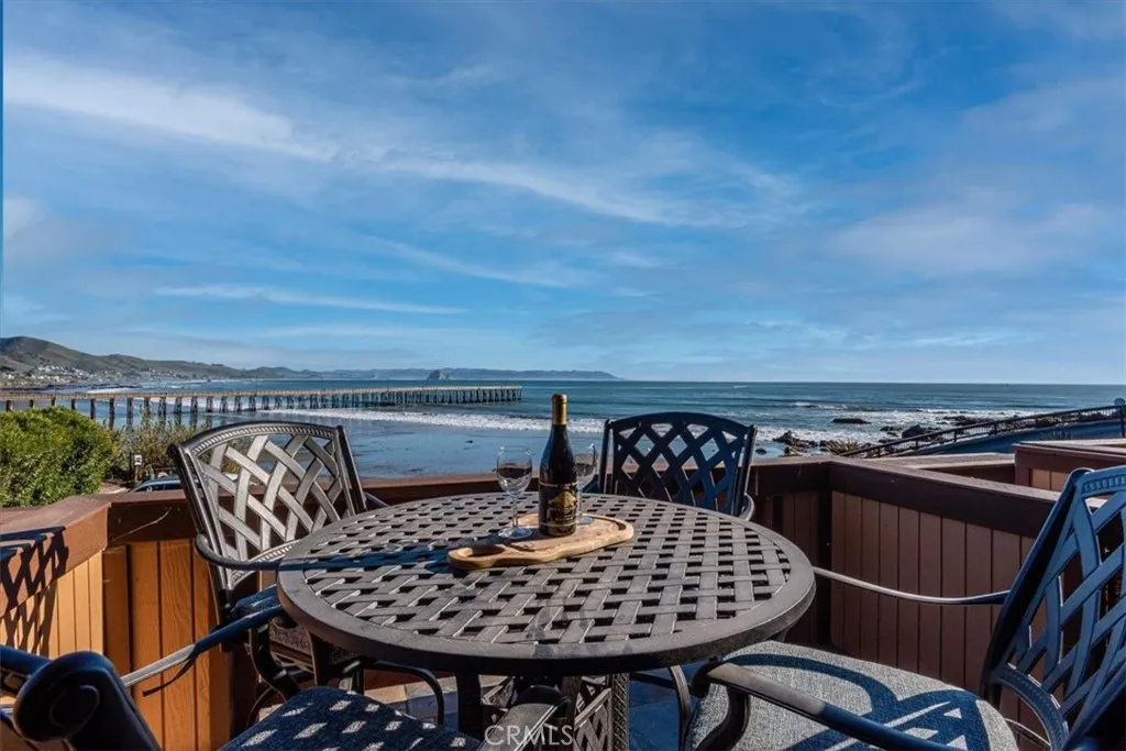 Oceanfront Licensed Vacation Rental Condo! Here is your chance to purchase a front row seat to the Beach with spectacular views of the Ocean and Cayucos Pier. This Condo can be used for your Residence or Second home or your Second home and Utilize the vacation rental license status to earn income while your not able to use the condo, what more can you ask for? This One Bedroom / One Bathroom ground floor unit is offered fully furnished to continue using as a licensed vacation rental or just enjoy using it right away after purchase. The spacious patio is a plus to enjoy the many days of Cayucos weather along with the stunning ocean views. There is space for a Stackable washer/dryer in the unit not currently used. There is one designated parking space in covered garage area with an outdoor storage space also close visitor parking. The laundry facility is located in the common area. Call your Realtor for a showing.