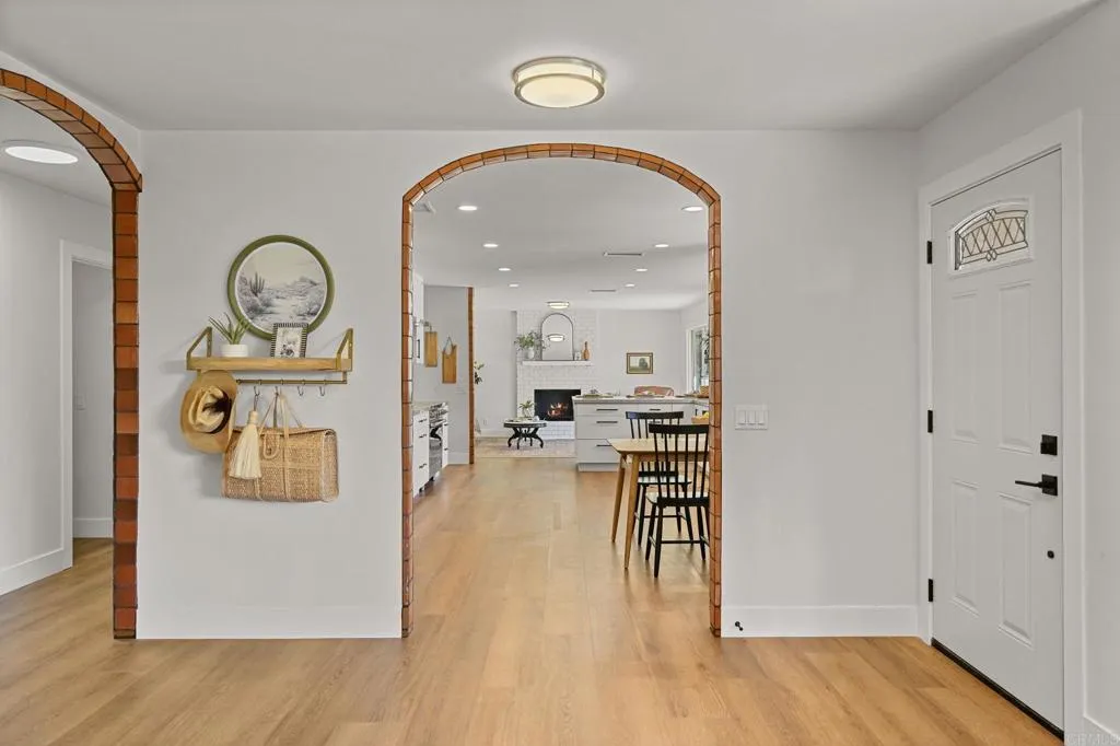 Privately tucked behind its own gated entry, this fully fenced single story ranch home offers both seclusion and convenience, with easy freeway access and Felicita Park just outside your doorstep. Set on nearly three quarters of an acre of flat, usable land, the property balances timeless charm with thoughtful updates. Inside, original tile archways and a cozy fireplace create a welcoming atmosphere, while the open concept layout allows for effortless flow between living spaces. The kitchen is a true highlight, featuring high end Frigidaire Professional appliances and pull out shelving that makes organization simple. It is a space equally ready for a quiet morning coffee or lively gatherings with family and friends. The private primary suite feels like a retreat of its own, complete with a luxury en suite and direct access to a secluded patio where you can enjoy fresh air and quiet moments to start or end your day. Two additional bedrooms and a secondary bath with dual sinks provide comfort and functionality for everyone. The home also features a fully finished two car garage that adds both polish and practicality. Just off the garage, a climate controlled office provides the perfect space for work, hobbies, or storage, while an in ground safe offers additional peace of mind. Outdoors, mature shade trees and fruit trees frame the landscape, while the chicken coop adds a playful touch of country living. If you have ever dreamed of collecting fresh eggs in the morning, the coop is already here to make that dream a reality. With owned solar keeping energy costs low, plenty of room to spread out, and the secondary access point perfectly suited for a future ADU, this property offers endless possibilities. This home blends privacy, character, and convenience in one of Escondido’s most desirable locations, where everyday living feels both practical and a little magical.