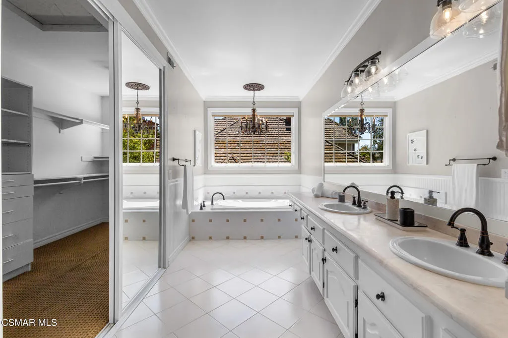 Welcome to 29340 Castlehill Drive, where elegance meets enchantment in the prestigious Morrison Highlands. This breathtaking 5-bedroom, 5-bathroom estate spans nearly 5,000 square feet of open living space bathed in natural light and has been beautifully reimagined with attention to every detail.Step inside to soaring ceilings and a graceful flow that draws you into the heart of the home. The formal living room, filled with sunshine, opens to a sophisticated dining room, ideal for hosting both lively gatherings and intimate dinners. Just beyond, the family room offers warmth and comfort with its inviting fireplace, custom built-ins, and wet bar, while walls of windows frame views of the backyard.The kitchen is a showpiece for any cook, with professional-grade Viking appliances, a Franke farmhouse sink, striking Calacatta Laza quartz counters, and generous workspace. A casual dining area and seamless connection to the family room make it the perfect everyday hub. On this level, you will also find two private en-suite bedrooms, each with tastefully remodeled baths, ideal for guests or multi-generational living.Upstairs, a light-filled family lounge welcomes you with a dry bar, beverage center, and ample storage, a perfect space for game nights, weekend movies, or simply unwinding with good company. Two large secondary bedrooms are served by a beautifully updated bath, while the primary suite offers an indulgent retreat. A separate sitting room with a double-sided fireplace creates a cozy escape or private workspace, and two spacious walk-in closets lead to a luxurious spa-like bathroom.Through charming French doors, the backyard feels like your own private resort. Set on a third of an acre, this personal haven features a sparkling pool and spa surrounded by generous lawn space and room to play. The built-in BBQ, covered patio, and multiple sitting areas make it easy to entertain or simply enjoy a quiet afternoon outdoors.Throughout the home, you will find thoughtful custom touches, from chair rail and refined moldings to designer fixtures that add character and warmth. Recent updates include new hardwood floors, custom window treatments, designer light fixtures, a tankless water heater, newer HVAC units, pool heater, and filter, along with remote-controlled shades, smart dimmers, and LED lighting.Located in one of Agoura Hills’ most desirable neighborhoods, this home offers not just beauty but also convenience, with close proximity to award-winning schools, charming dining, scenic hiking trails, and the Pacific Ocean.