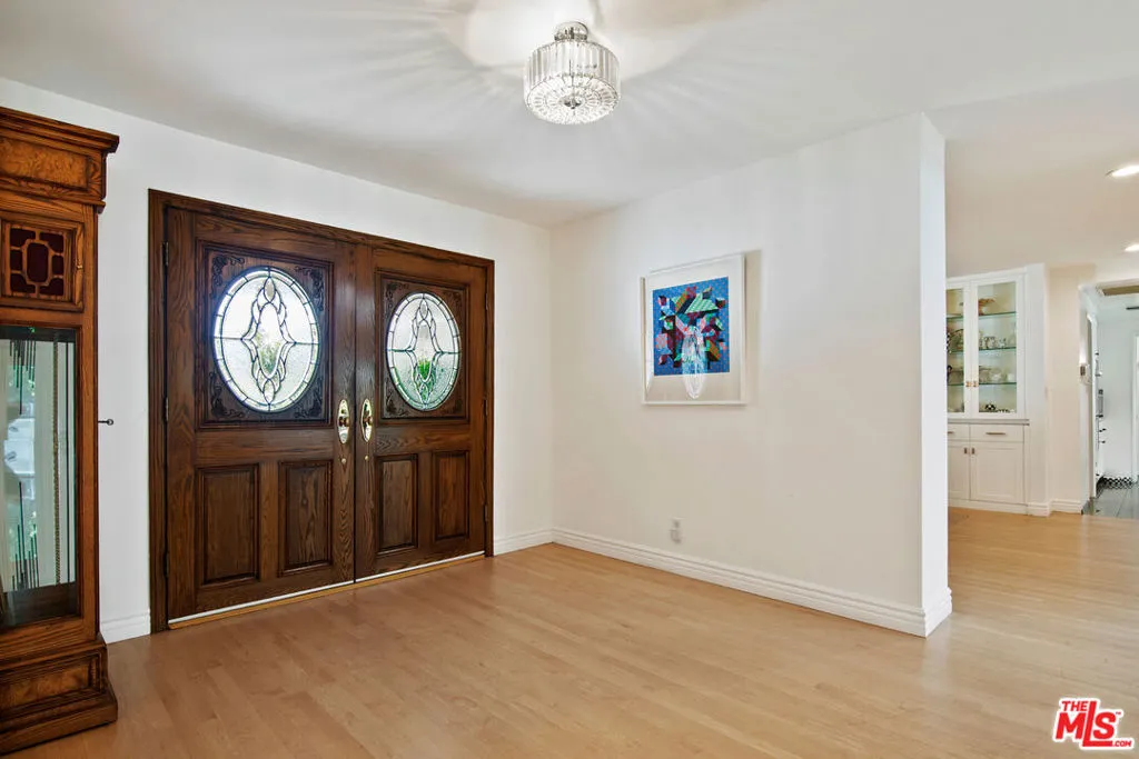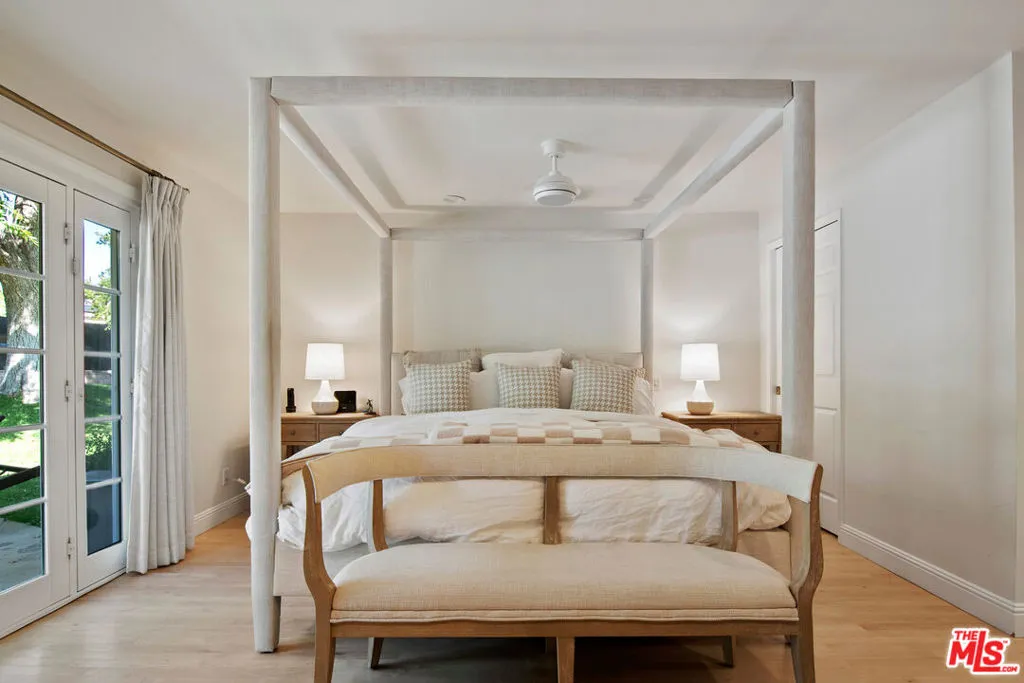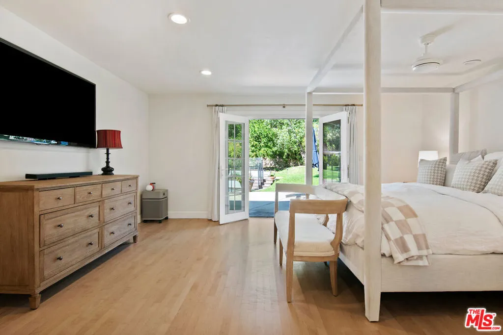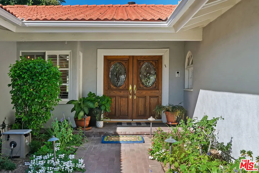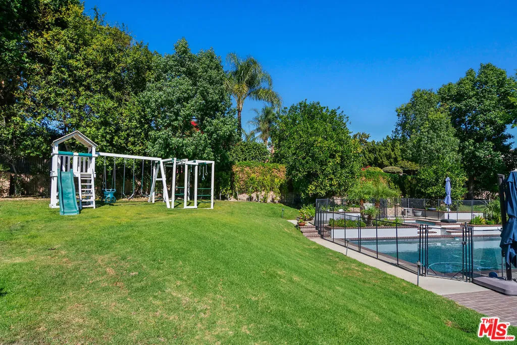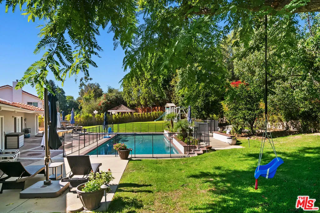 Welcome to this gorgeous single-story home on nearly half an acre, ideally situated on a corner lot in the highly sought-after Rancho de Caballeros community of Chatsworth. A true entertainer’s dream, this 5 bedroom residence offers an incredible backyard retreat complete with a sparkling pool, spa, outdoor kitchen, and sport court. Step through double doors into a spacious entryway with light oak wood floors throughout and soaring ceilings that create an open, airy feel. The living spaces include a formal living room, elegant dining room with custom built-ins, and a family room featuring a double-sided fireplace and custom cabinetry with a wine fridge. The primary suite is a serene sanctuary with newer Milgard French doors leading to the backyard and a brand-new designer bathroom boasting ceramic tile, a freestanding tub, frameless glass shower with brass fixtures, and a double vanity. Three additional bedrooms are located down the hall, along with a beautifully renovated bathroom. On the opposite side of the home, the kitchen offers stainless steel appliances and a cozy breakfast area. A spacious laundry room and guest suite with pool access complete this thoughtfully designed layout.Located just a short walk to the community tennis courts, this home also enjoys proximity to premiere private schools including Sierra Canyon and Chaminade. Commuting is easy with quick access to the 118 Freeway and Topanga Canyon. The neighborhood is enriched by scenic open-space amenities explore the Santa Susana Pass State Historic Park, Chatsworth Trails Park, Stoney Point, Chatsworth Oaks Park, and nearby equestrian and hiking areas. This rare gem in Rancho de Caballeros delivers the lifestyle, location, and luxury you’ve been waiting for.