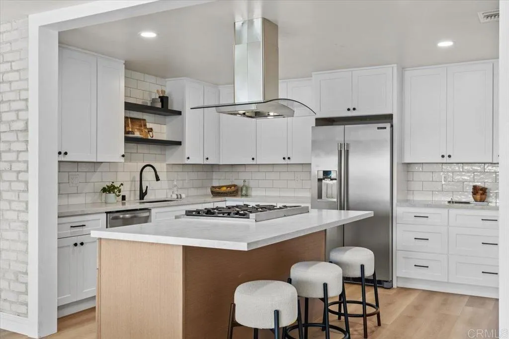 South Escondido beautifully appointed, with designer finishes, 5 bedroom, 3 bathroom, oversized detached 2 car-carport, ranch-style home…..all on over a third of an acre on a corner lot. 2 of the 5 bedrooms are ensuite. This stunning single-story home offers approximately 2700 square feet of living space and is the perfect home for multi-generational living, hosting guests or just enjoying it all to yourself. Step inside to discover an open-concept floor plan engulfed with natural light…..formal dining room (with fireplace), new kitchen, new flooring, new interior/exterior paint, new interior doors, new windows, new permitted electrical panel, new tankless water-heater. Ensuite Master bedroom retreat (with fireplace) has easy access to the rear patio/yard. 5th bedroom is the smallest of the 5 bedrooms and can be an office or nursery. ADU potential? All remarks are to best of knowledge of Seller/Seller’s agent and all are to be verified by Buyer & Buyer’s Agent prior to COE.
