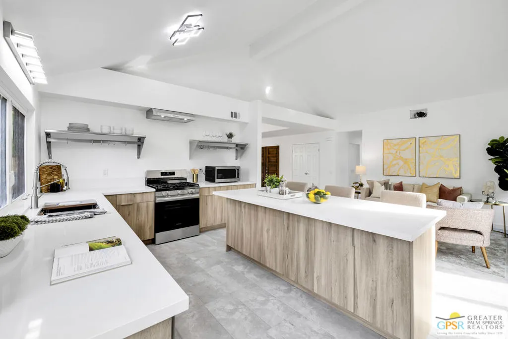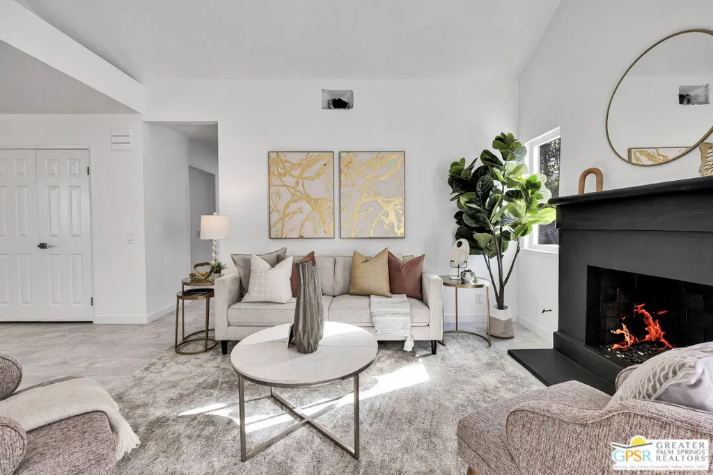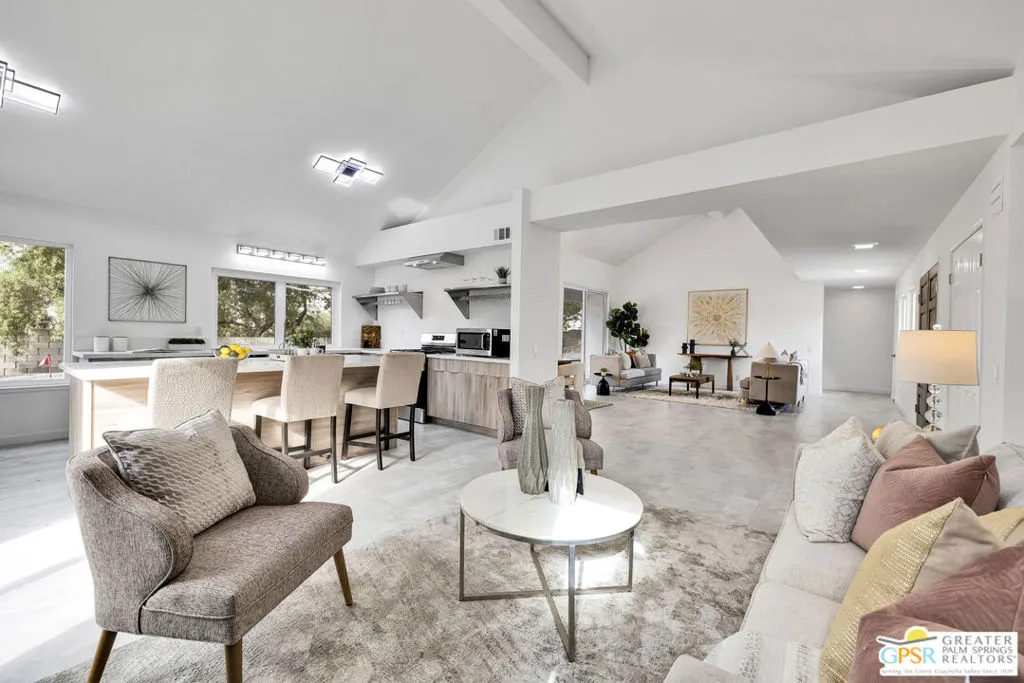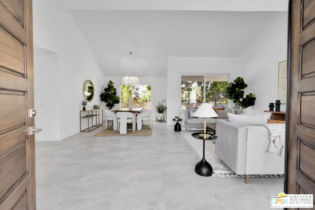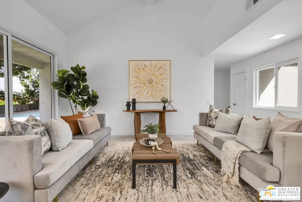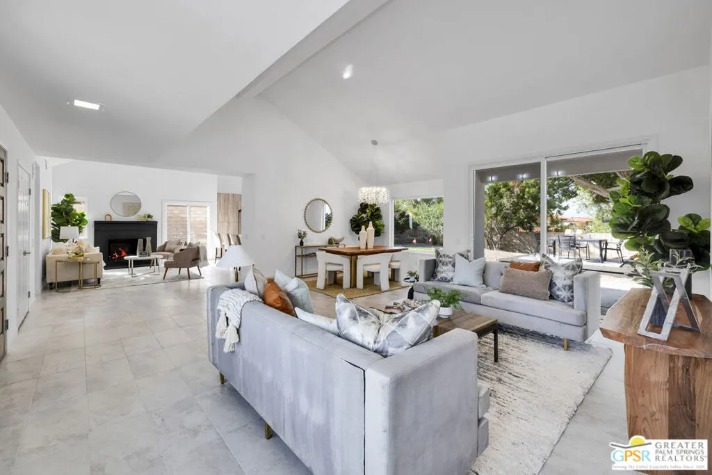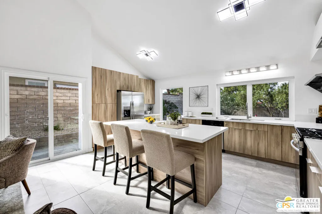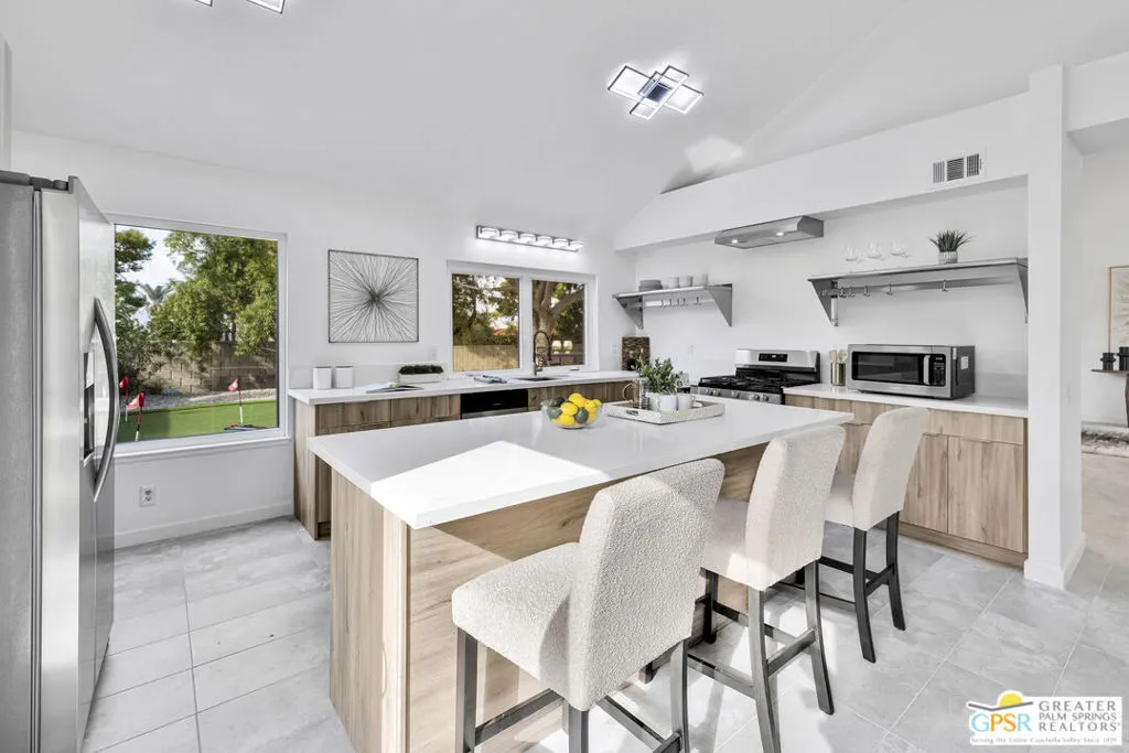 PRICE REDUCTION. Elegant Modern Contemporary home located in Palm Desert’s desirable Canyon Cove. Entire property has been artfully restored and reimagined far beyond its original concept. Built in 1985 it has 3 beds, 2 baths. Its huge expansive living room, dining room and sitting room while maintaining their own private locations all flow to one gorgeous light filled space. Situated withing skipping distance from El Paseo (Palm Desert’s Rodeo Drive) with its chic shops, dining establishments and art galleries. This the property has NEW “almost” everything, a partial list; Kitchen, Bathrooms, Dual Pane Glass Throughout, Doors, Floor Tile, ALL Appliances, Pool and Spa plaster, Tile and Motors. Extra unique features include a Gazebo, Putting Green, Bocce Ball Court, Large wooden open air Deck with seating under a gorgeous shade tree, a pass thru bar from kitchen for refreshing cocktails after strenuous putting session. 3 car garage with separate doors. The entire house is exquisite, the kitchen is a chef’s delight, with beautiful cabinetry, hardware and countertops. A huge island that seconds as a breakfast bar and a unique set of metal shelves flanking the stove. The light fixtures throughout the entire house are movie set quality. Come see, you’ll love it. It is Truly SMASHING
