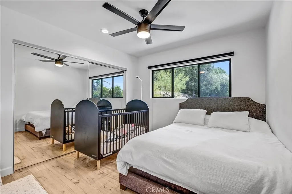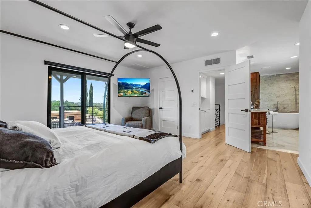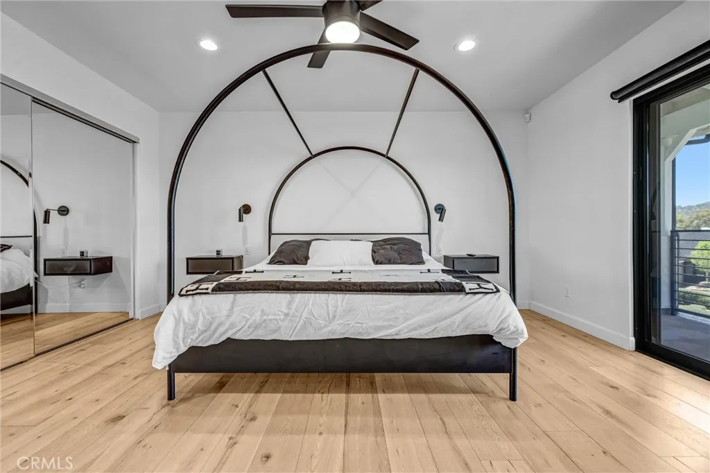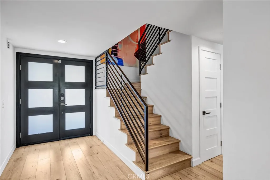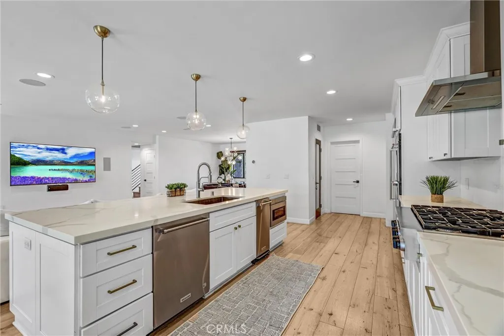 Nestled behind a gated entrance in one of Woodland Hills’ most sought-after neighborhoods, south of the boulevard, this entertainer’s dream seamlessly blends elegant design with state-of-the-art convenience. Inside, distressed white oak floors flow through a bright foyer entered via a custom glass front door, leading to a living room warmed by a striking stone fireplace. The chef’s kitchen delights with crisp white cabinetry, quartz countertops, a generous island, and a large walk-in pantry—all designed to enhance both daily living and entertaining. Through the kitchen and living spaces, bi-folding glass doors open to a resort-style backyard featuring a black-bottom pool with spa, a terraced hillside walkway, integrated sound system, covered outdoor kitchen, and cozy gas fire pit—perfect for indoor-outdoor gatherings. The home is fully automated with a Control4 smart-home system for lighting, climate, audio, and security, satisfying the expectations of today’s tech-savvy buyer. This is refined, modern living in the heart of Woodland Hills.