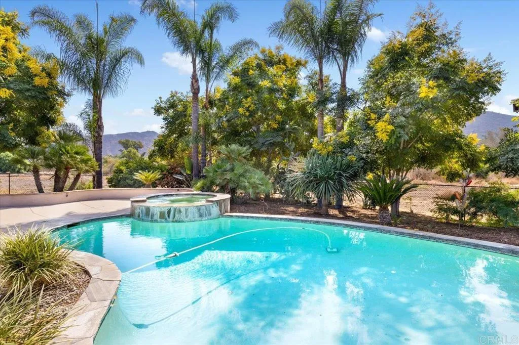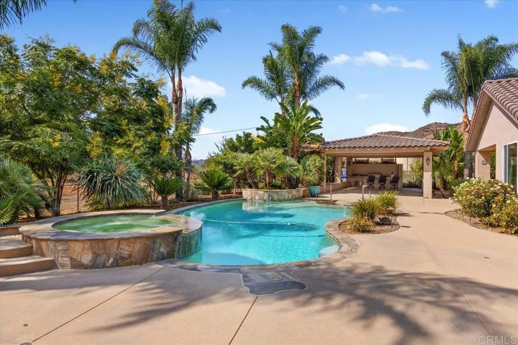 A private sanctuary nestled on 8 acres in San Diego’s most coveted location; the historic San Pasqual Valley. Enjoy off-the-grid ranch style living supplied by a fully owned solar system and a well which produces enough water to irrigate the landscaping and supply the home via a full house filtration system. The backyard is a secluded oasis with mature trees providing privacy around the pool and spa, which are perfectly complimented by an oversized outdoor fireplace and a covered outdoor kitchen. As you enter into this custom 2008 home, dubbed “Casa Bella”, your eyes are immediately drawn into the grand dining room. Continue to the west corridor which holds the open concept kitchen with a large pantry and island with bar seating. Just off the kitchen is the breakfast nook and generously spaced family room. Continue further into the house to find the laundry room, a large bedroom with ensuite bathroom, and the guest suite, with its own private exterior access and walk in closet. The east corridor holds yet another bedroom as well as a pool bathroom which grants access from the exterior. The hallway continues into the master suite, which also has private exterior access, and is completed by a spacious master bathroom, jacuzzi tub, and oversized walk-in closet. The home on its own is perfect, but other opportunities abound for this property. Being located in the heart of San Diego’s wine country, it offers the opportunity to start your own vineyard or winery operation, or to keep it as an AirBNB. The flat topography also offers the opportunity for an equestrian facility.