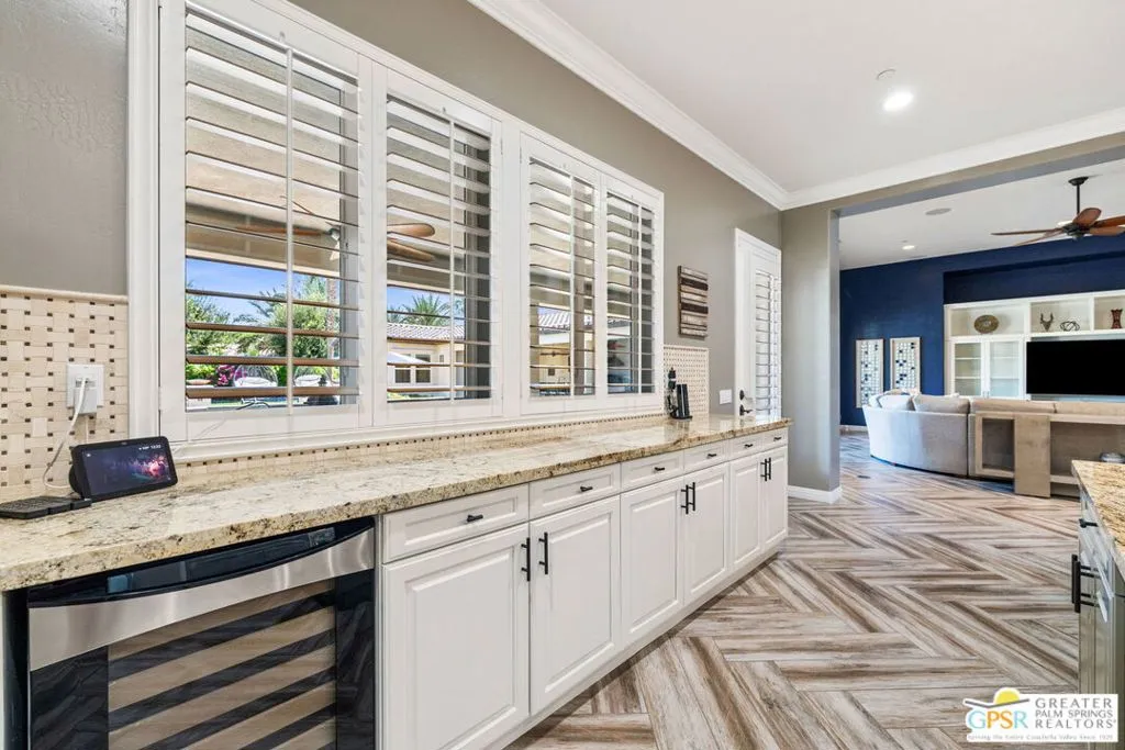 MADISON ESTATES luxury living! This impressive 5-bedroom, 5.5-bath residence spanning over 5,000 square feet offers 5 ensuite bedrooms with a detached 2-room casita in the mix. Open concept living with tall ceilings blends seamlessly to an expansive outdoor entertaining space designed for year-round enjoyment. A fabulous covered patio with fireplace, sparkling pool and spa, outdoor shower, and multiple dining and lounging areas are complemented by a huge outdoor kitchen with large island with built-in fire pit and dual TVs framing the space. Additional fire features frame the pool, misters keep things cool, and the view at night is spectacular. A private pickleball court completes the resort-style setting. Inside, the kitchen is the heart of the home, anchored by a substantial island with impressive seating capacity for gathering and entertaining. Custom cabinetry, a 5-burner gas cooktop, dual ovens, and refined finishes set the tone. The living area off the kitchen flows beautifully for entertaining, complemented by a formal dining room. Ensuite bedrooms enjoy a nice separation, with two lining each wing of the home, and the casita offering even more flexibility. Herringbone tile, custom woodwork, tall ceilings, and lovely finishes throughout add sophistication. The primary retreat opens to the pool area and features a private sitting area, spa-like bath with soaking tub and walk-in shower, and an impressive walk-in closet. Separate garages accommodate three cars in total. Madison Estates is a private gated enclave of just 55 homes on half-acre lots. Residents enjoy privacy, scale, and prestige along with proximity to the Empire Polo Club, PGA West, The Madison Club, and the valley’s world-class golf, dining, and entertainment, all with low HOA fees and land you own. Enjoy it all!
