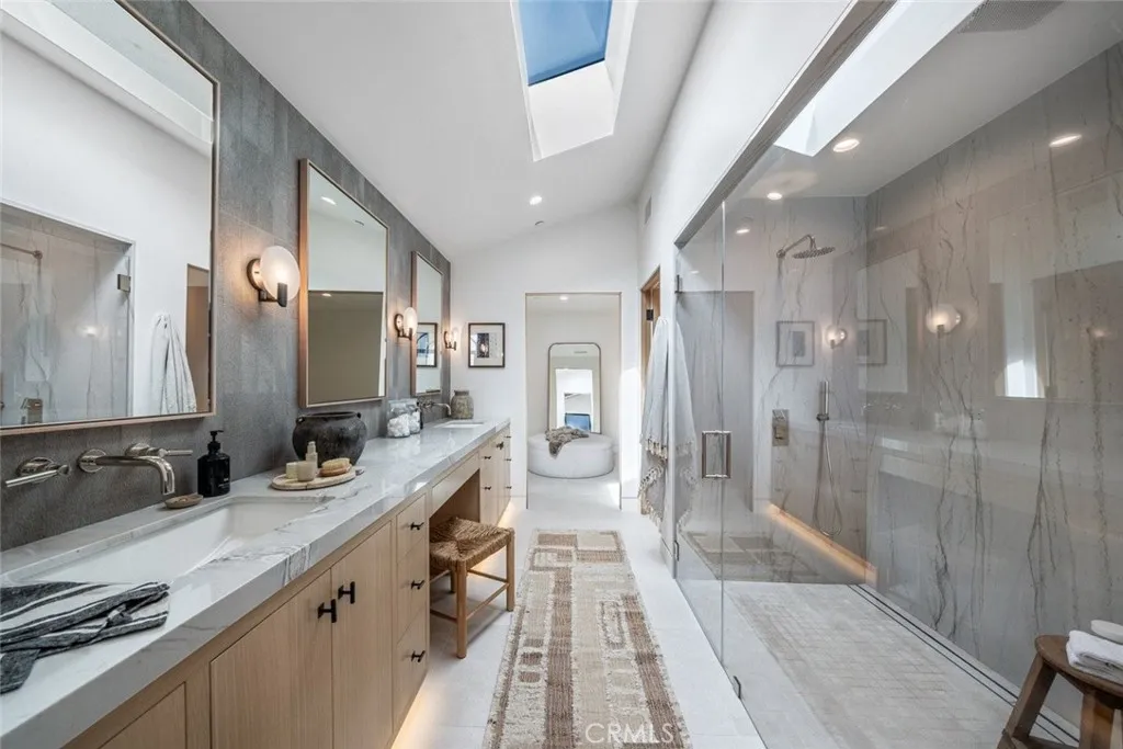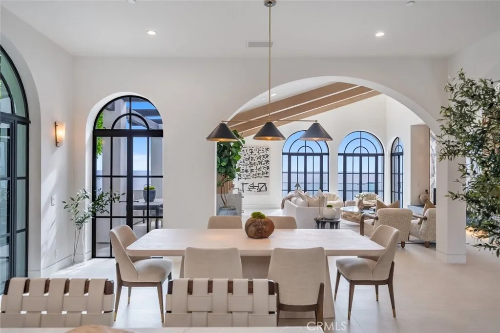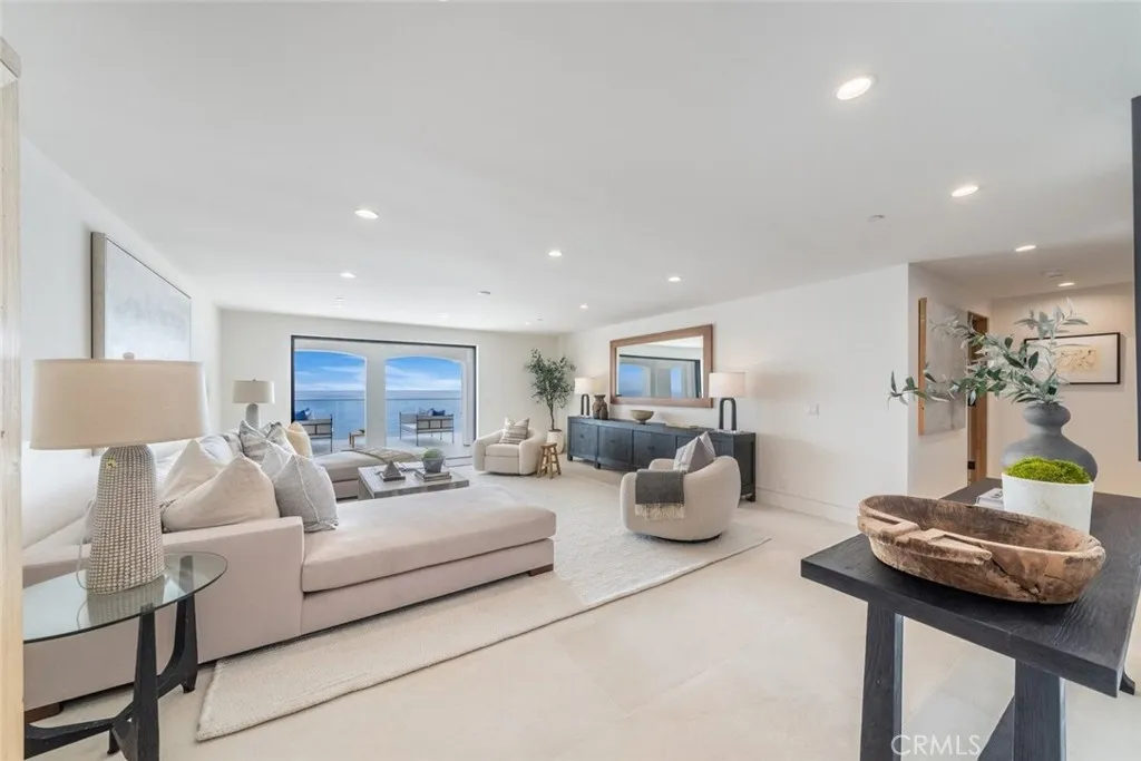 Perched majestically on a half-acre oceanfront bluff overlooking the beautiful Southern California coastline, 32101 Coast Hwy embodies the epitome of luxury Laguna Beach living. This stunning estate features panoramic white water, ocean, Catalina Island, sand, and coastline views. A one-of-a-kind home, it has been completely remodeled to the highest quality. A large bluff-top infinity pool with spa and pool house boast panoramic vistas: an architectural rarity that would never be approved if submitted today. This home was transformed into a contemporary Santa Barbara-style masterpiece by renowned architect James Conrad. Upon entry, the sprawling main level open floor plan immediately captivates with stunning panoramic ocean views. The main level features a spacious living room, dining room, gourmet chef’s kitchen, powder room, luxurious primary suite, and magnificent outdoor decks all designed to maximize natural light and ocean vistas. The seamless flow extends to the lower level, where a large family room opens onto the expansive deck overlooking the pool, spa, and ocean. The lower level features three bedrooms, three bathrooms with immaculate tile work, spacious laundry room, and direct access to the pool deck, seamlessly blending indoor and outdoor living. Additional interior touches include incredible custom tile flooring, with ceilings featuring white oak beams and tongue & groove design. Moving outside, lush landscaping and a fully remodeled pool, spa, and waterfall delight the senses. Additionally, the pool house features a beautiful bathroom and bar. New roofing strategically integrates solar panels into the shingles. Three new sets of pocket doors and exterior steel doors with marine-grade finish, plus a brand-new Euroline steel front entry door complete the picturesque appearance. Every detail of this virtually brand-new home has been meticulously curated. The extensive three-year renovation included structural enhancements, updating the plumbing, electrical, & HVAC with state-of-the-art systems, and installation of top-quality windows. For a turnkey experience, the brand new elegant furnishings are available for purchase. Also available furnished for $56,000 per month. 32101 Coast Hwy not only offers a luxurious residence, but a lifestyle characterized by coastal serenity and sophistication. Ideal for those seeking the ultimate in beachfront living, this property invites you to experience the pinnacle of Laguna Beach’s coastal charm and beauty.
