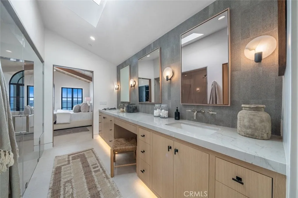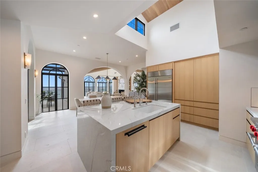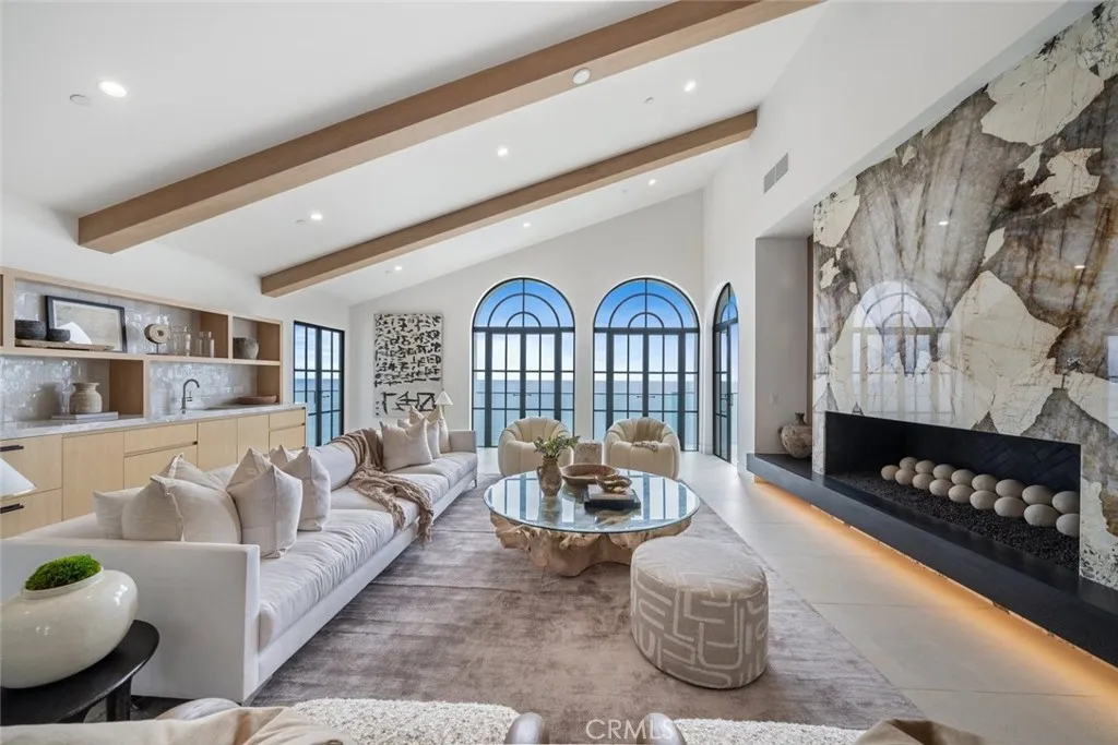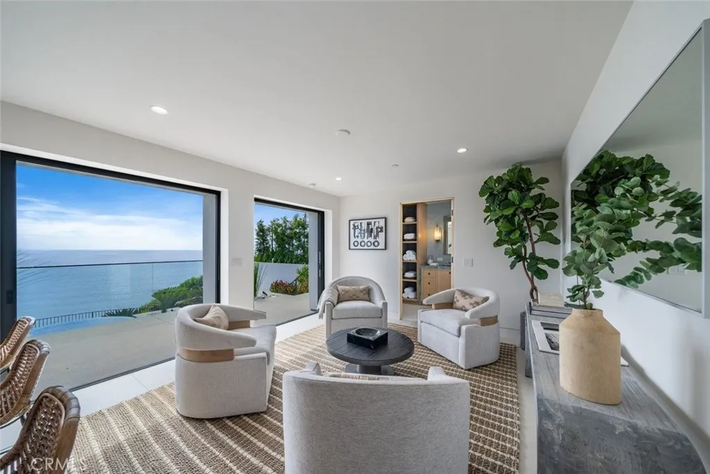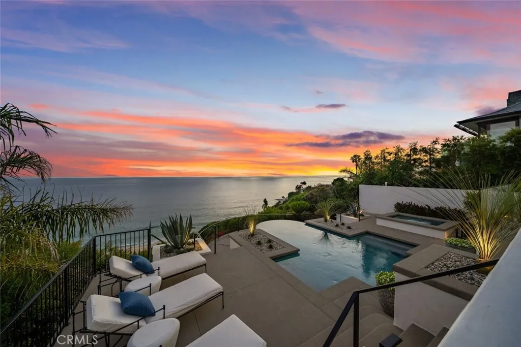 Perched majestically on a half-acre oceanfront bluff overlooking the beautiful Southern California coastline, 32101 Coast Hwy embodies the epitome of luxury Laguna Beach living. This stunning estate features panoramic white water, ocean, Catalina Island, sand, and coastline views. A one-of-a-kind home, it has been completely remodeled to the highest quality. A large bluff-top infinity pool with spa and pool house boast panoramic vistas: an architectural rarity that would never be approved if submitted today. This home was transformed into a contemporary Santa Barbara-style masterpiece by renowned architect James Conrad. Upon entry, the sprawling main level open floor plan immediately captivates with stunning panoramic ocean views. The main level features a spacious living room, dining room, gourmet chef’s kitchen, powder room, luxurious primary suite, and magnificent outdoor decks all designed to maximize natural light and ocean vistas. The seamless flow extends to the lower level, where a large family room opens onto the expansive deck overlooking the pool, spa, and ocean. The lower level features three bedrooms, three bathrooms with immaculate tile work, spacious laundry room, and direct access to the pool deck, seamlessly blending indoor and outdoor living. Additional interior touches include incredible custom tile flooring, with ceilings featuring white oak beams and tongue & groove design. Moving outside, lush landscaping and a fully remodeled pool, spa, and waterfall delight the senses. Additionally, the pool house features a beautiful bathroom and bar. New roofing strategically integrates solar panels into the shingles. Three new sets of pocket doors and exterior steel doors with marine-grade finish, plus a brand-new Euroline steel front entry door complete the picturesque appearance. Every detail of this virtually brand-new home has been meticulously curated. The extensive three-year renovation included structural enhancements, updating the plumbing, electrical, & HVAC with state-of-the-art systems, and installation of top-quality windows. For a turnkey experience, the brand new elegant furnishings are available for purchase. Also available furnished for $56,000 per month. 32101 Coast Hwy not only offers a luxurious residence, but a lifestyle characterized by coastal serenity and sophistication. Ideal for those seeking the ultimate in beachfront living, this property invites you to experience the pinnacle of Laguna Beach’s coastal charm and beauty.