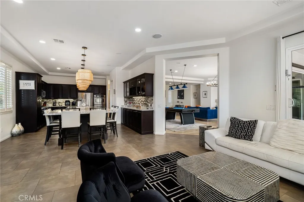 Located in the desirable Terra Lago community, this stunning 4-bedroom, 3-bathroom home offers over 3,100 square feet of luxurious living space on a generous 10,019 sq ft lot. Designed with comfort and style in mind, the home features soaring high ceilings, recessed lighting, and an open floor plan ideal for both everyday living and entertaining. The family room centers around a cozy fireplace, seamlessly flowing into a chef’s kitchen equipped with a center island, stainless steel appliances, and ample cabinet space. The spacious bedrooms provide plenty of room for relaxation, including a luxurious primary suite with a spa-like bathroom featuring a soaking tub and separate shower. Step outside to a true entertainer’s dream backyard—complete with a covered patio, sparkling pool and spa, built-in BBQ area, and a fire pit perfect for gathering under the stars. Terra Lago is a gated community known for its exceptional amenities, including a 20 acre lake, a 10,000 square foot clubhouse with a fitness center, billiards room, and event spaces, access to the Golf Club at Terra Lago, featuring two 18-hole championship courses, walking trails, playgrounds, and a dog park for outdoor enjoyment. This home offers the perfect blend of comfort, function, and resort-style outdoor living in one of the area’s most sought-after communities.