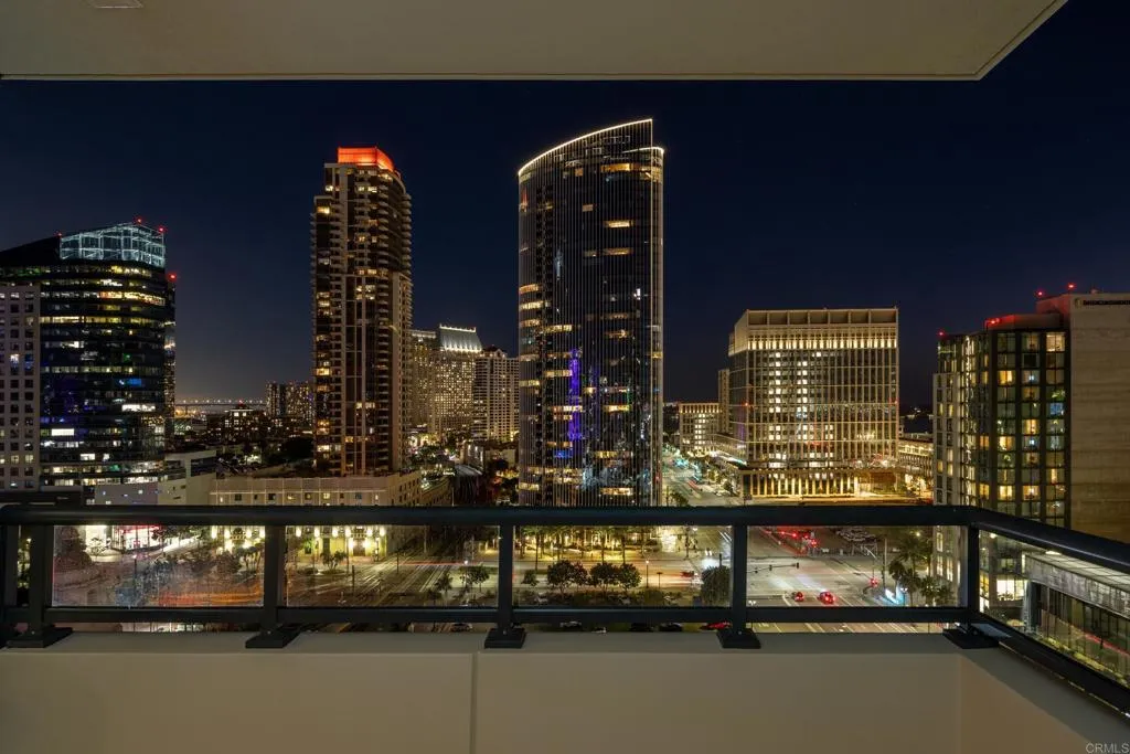 Panoramic bay & skyline views are the centerpiece of this luxury condo at the iconic Grande South on Millionaire’s Row. The open-concept design showcases expansive windows in every room that fill the space with natural light and frame sweeping views of the harbor and downtown. The custom kitchen is appointed with granite countertops, stainless appliances, wine fridge, and counter seating that flows seamlessly into the living and dining area. Step outside onto your private balcony, perfectly positioned to take in sunsets over the water. The primary bedroom with ensuite bath has a dual vanity, soaking tub, and walk-in shower. An optional third bedroom offers the flexibility to create an incredible home office or creative space, where you can work while soaking in views of the bay and city lights. Resort-style amenities provide an 80′ pool, hot tub, steam room, sauna, recently remodeled gym, on-site concierge, 24/7 security, BBQ area, guest suite, and secured bicycle storage. Two side-by-side underground parking spaces, an additional motorcycle space, and a locked storage area are also included. With a Walk Score of 95, this home is surrounded by the best of downtown. Little Italy, the Marina District, Waterfront Park, Seaport Village, and the Embarcadero, are all within walking distance, while the Gaslamp Quarter, the Rady Shell, and Petco Park are a quick trolley ride away. This is the epitome of Downtown San Diego living, offering endless options for dining, shopping, and entertainment.