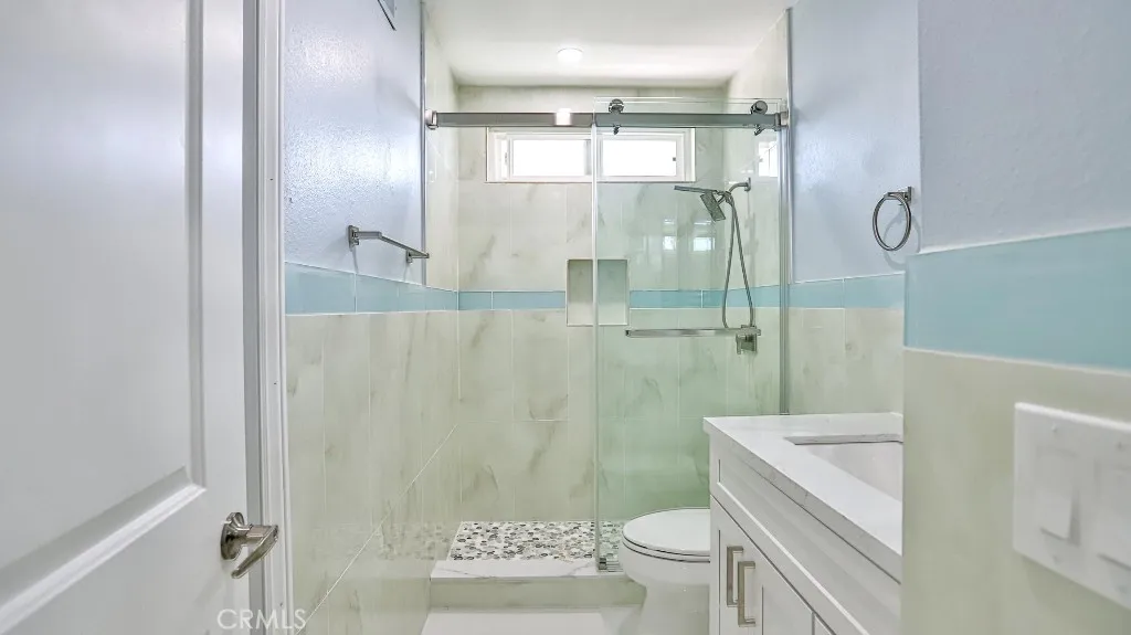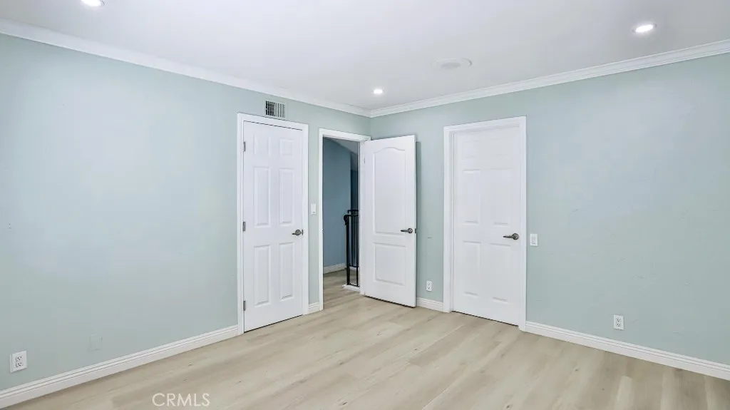 The primary suite offers a private balcony, dual closets, and a walk-in shower.