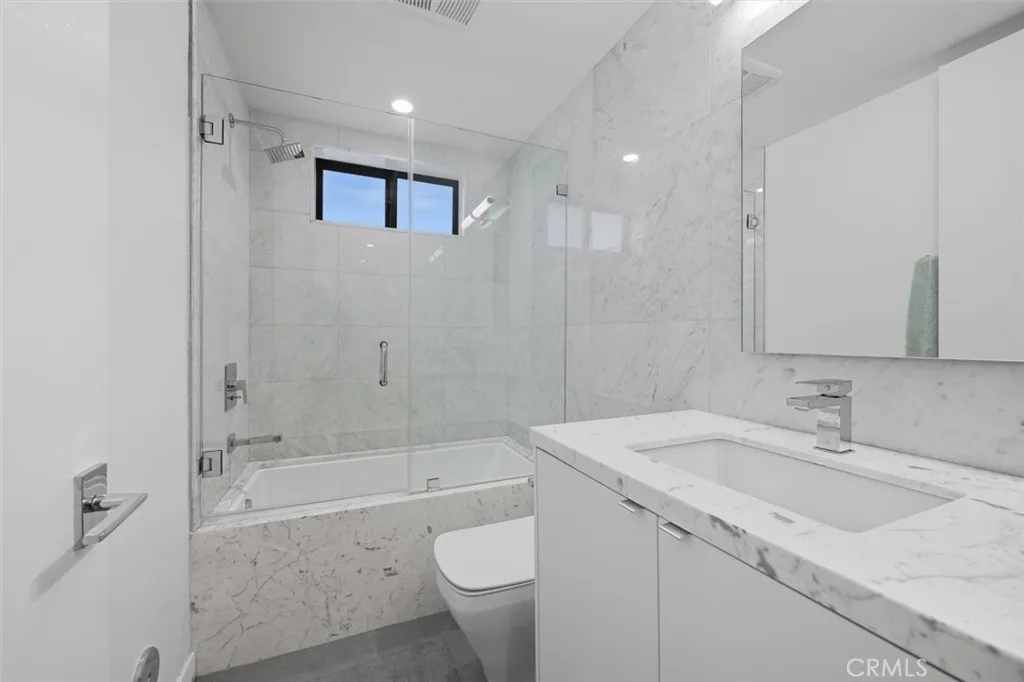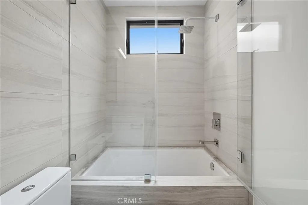 Wide-plank French white oak floors flow throughout, adding warmth to the home’s clean architectural lines. The second level includes three bedroom suites, each with its own bath. The primary suite features a double-door entry, a custom walk-in closet, and a serene, spa-inspired bathroom with dual vanity areas, a relaxing soaking tub, and a large walk-in shower. Main bedrooms are all on the entry level with full sized laundry on that same level.