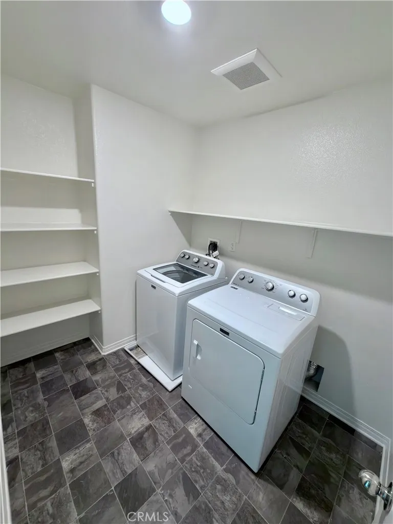 Located in a secure gated community, this 3-bedroom, 2-bath home offers a spacious layout with modern features. The property includes a 2-car garage, washer and dryer conveniently located upstairs, and a full kitchen with dishwasher, stove, and refrigerator.