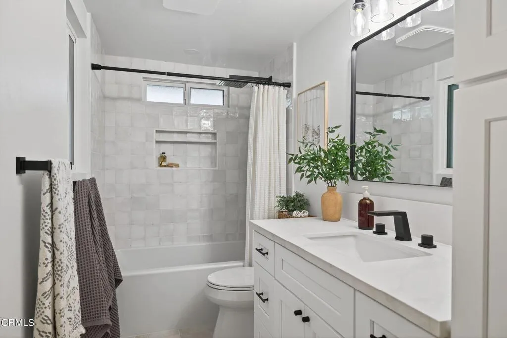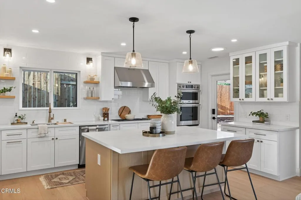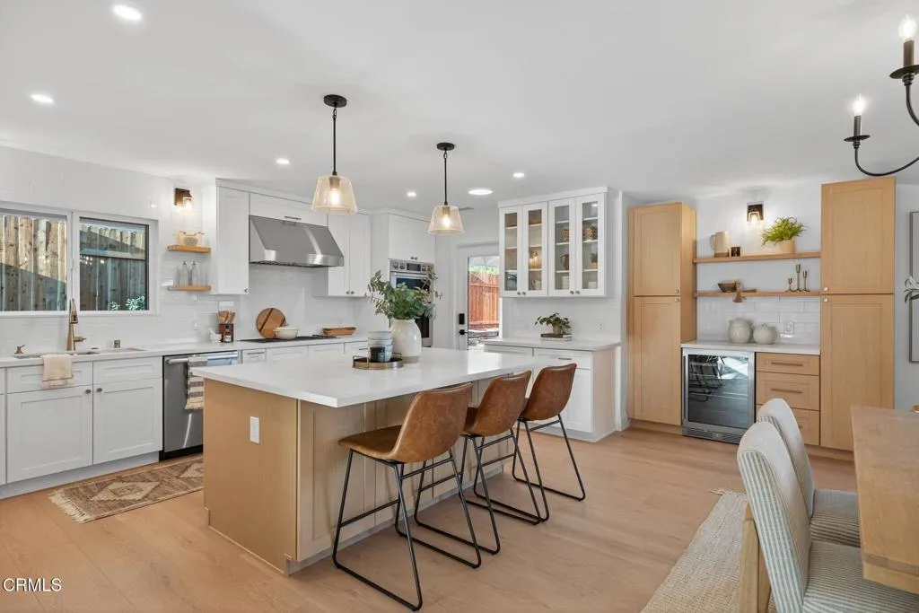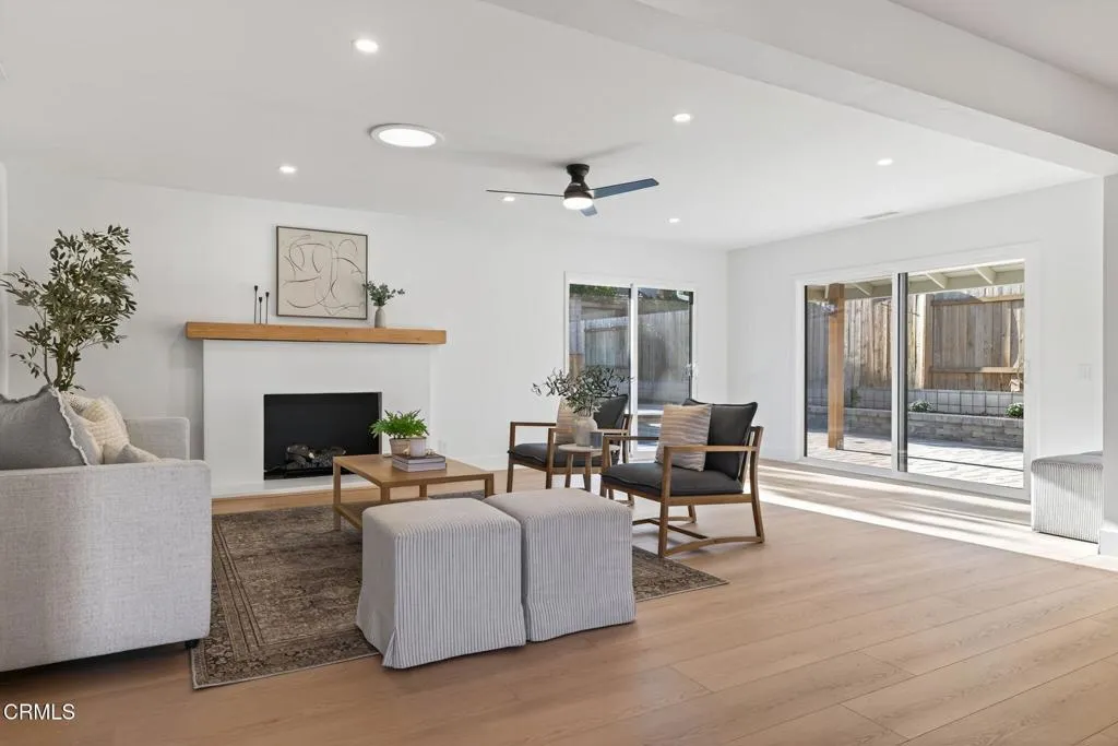 Welcome to your Camarillo Heights dream home!Tucked away on a peaceful cul-de-sac with scenic mountain views, this single-level 4-bedroom, 3-bathroom residence has been completely reimagined from top to bottom with every detail is NEW and designed to impress.Step inside to a stunning open-concept living space featuring luxury PVC luxury flooring, a cozy fireplace with a wood mantel, skylight, recessed lighting & ceiling fan, and sliding doors that fill the home with natural light and offer a peek at the sparkling pool. The living and dining areas flow seamlessly into the chef’s kitchen, showcasing a large quartz island, floating wood shelves, stainless steel DACOR luxury appliances, range hood, and a stylish butler’s pantry complete with wine fridge, for the ultimate gorgeous kitchen! The home features two primary suites, each with recessed lighting, ceiling fans, large closets, and beautifully finished en suite bathrooms highlighted by black accent fixtures, designer tile, and enclosed glass showers. The back primary bedroom looks out to the pool and mountain views! Two additional spacious bedrooms offer ample closet space and modern touches throughout.Outside, enjoy new stucco, fresh exterior paint with crisp white and black accents, a new paver driveway, and a striking modern wood front door all giving curb appeal! The backyard is an entertainer’s paradise with a fully renovated pool and spa, new equipment, pavers surrounding the pool, and a raised deck ideal for lounging or having a live band to host parties! Enjoy mountain views and nearly 10,000 square feet of outdoor living. Private courtyard areas for added charm on the side of the home, all NEW wood fencing was also completed. Additional upgrades include, NEW 3 zone HVAC system, a brand new 220 electrical panel, all NEW electrical wiring, NEW PEX plumbing, interior fresh paint and baseboards, a finished detached garage with laundry space! Did I mention the Solar panels, NEST thermostats, and all NEW windows and doors! This Camarillo Heights gem is truly turnkey and ready for its next family, come experience it in person to appreciate every detail as nothing was overlooked! See it today!
