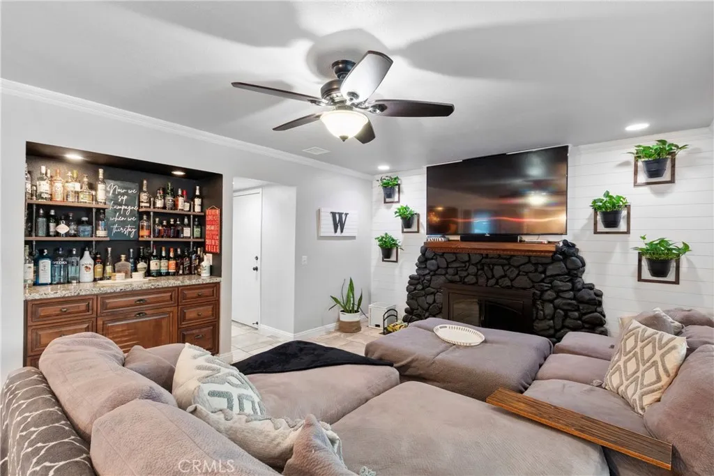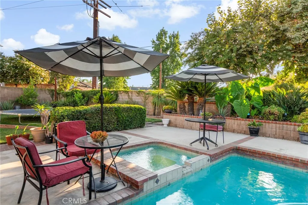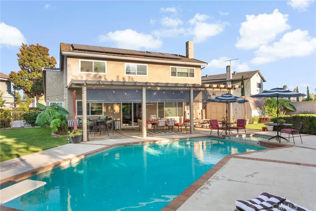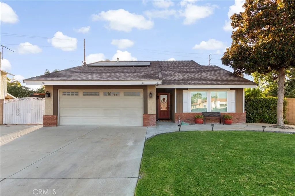 MOTIVATED SELLERS…Welcome to 2620 S. Quaker Ridge Place with over 9500 square feet of usable property. Beautifully maintained cul-de-sac home offering comfort, efficiency, and style. Enjoy modern touches. High vaulted ceilings lined with crown molding and wainscoting, Open-concept living/kitchen, Walk-in pantry/closet under stairs. Stainless steel appliances, Half bath downstairs, freshly painted, ship-lapped/rock fireplace. Natural light all day with Wooden Shutters & Wooden blinds, dual-pane windows throughout. Coffee/bar area complements the large open space to design as you please. Energy-efficient lighting, updated electrical outlets. Open sliding glass door to your own Tropical space.. stunning during the day & night. An entertainer’s dream backyard. large aluminum patio cover with built-in gutters, electrical/dual fans. Pool with diving board (upgraded pool system, including a new filter, variable speed pump, and vacuum), Fire pit, 2 sheds, RV Parking, dog run & doggie door. Front & back lined with Sprinkler system for easy maintenance. The yard boasts a collection of fruit trees (lemons, apple, orange, pear, plum, peach, pomegranate), as well as grapes, blackberries, aloe veras, elephant ears, succulents. Property has ADU potential.. owned solar added in 2019, 25 panels, monthly solar payments $250, while Edison bill is typically service fee only. Sellers will pay $10K towards Solar balance, leaving $10K remaining. The garage includes a 2nd level for storage that can be converted for future growth. Epoxied Garage used as home-based business workshop added mini-split air conditioning, additional outlets, pegboard walls, and wood shelving. Walk up the carpeted stairs & you’ll find 4 bedrooms along with 2 full baths, 1 with an updated vanity & mirror. Primary suite with his & hers closets, along with its own Bathroom. Wood flooring & ceiling fans in all bedrooms. Smart thermostat with built-in WiFi. Upgraded 50-gallon Water heater energy-efficient model. Countless upgrades making home move-in ready.