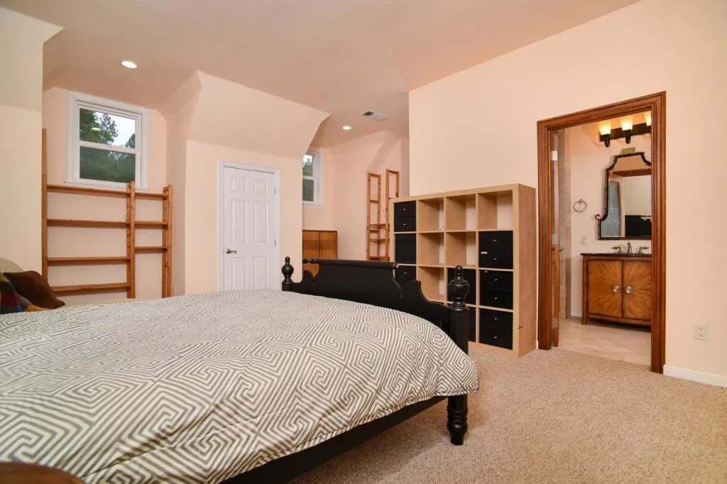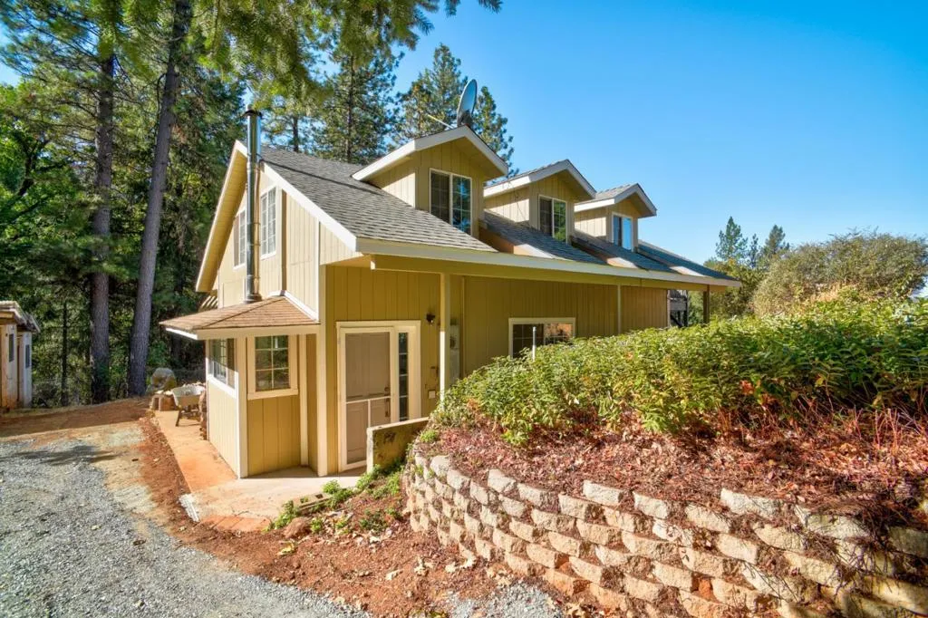 This stunning custom-built estate offers the perfect blend of privacy, comfort, and functionality. Set on a beautifully wooded 17.5-acre lot, the property features a spacious main residence, a charming guest house, and a wealth of outdoor amenities for an unparalleled lifestyle. The MAIN HOUSE features: Contemporary design with high ceiling and rich hardwood flooring, updated gourmet kitchen with quartz countertops, new cabinetry, premium appliances, and a large center island, three generously sized ensuite bedrooms, dedicated office and lower-level bonus room, attached 4-car garage, expansive new wrap-around deck with breathtaking views of sunsets and the surrounding forest. GUEST HOUSE features: updated Kitchen w/new appliances, cozy living room with hardwood flooring, one downstairs master suite, two upstairs rooms and one full bath, This property features: Swimming pool and spa adjacent to a spacious covered patio with built-in BBQ, paved walkways winding through fruit trees and a tranquil fish pond, well-established vineyard for the wine enthusiast, Additional amenities: Barn, tree house, greenhouse, and multiple storage sheds, Located just a short drive from town, local shops, Crystal Basin and the America River.