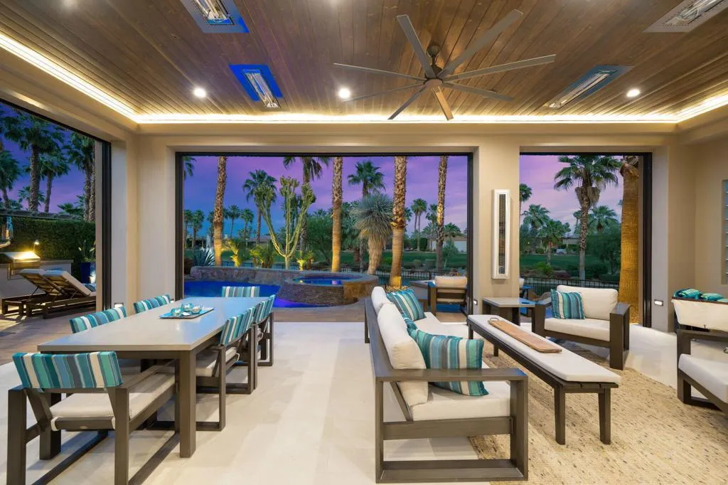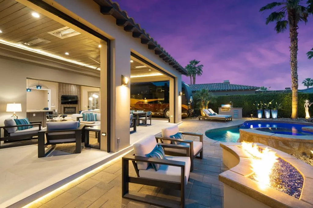 #106 DESERT SHORES RESORTOne of the most spectacular motorcoach properties you will ever find!Totally reimagined Exterior Elevation and Additions completed in 2021.The most lavish Outdoor Living Space you will find with:15′ x 32′ Solid-Covered PatioVoluminous 11′ CeilingsRaised Patio Floor matches interior floor height for seamless floor from indoor to outdoor living spaces.Full Bathroom for dinner guests and easy access from swimming pool.Patio includes both Electric Sunshades + Security Shutters which enclose the entire outdoor living patio keeps the patio safe and clean. (Security Shutters are included on all windows and sliders throughout the property)Built-In Space Heaters + Misting System.Cantilevered Patio Floor with underlighting.Beautiful Paverstone driveway and patio spaces and Epoxy Coach Pad.Freeform Pool with Quartize Spa with new Pebble Finish offers Raised Bond Beam at back of pool for privacy + LED Lighting and Pentair Remote Control System.Blue-Glass Fire Pit.BBQ grill area with wood-pellet memphis Smoker/Grill.Entry Gate for Privacy.Raised Santa Barbara Smooth Stucco exterior with Eldorado Stone Trim.Newer Landscaping and Ground Lighting.Raised RV HookUp Pedestal.Wrought-Iron Fencing to keep your Doggies secure.INTERIOR FEATURESRecent and Beautiful Remodeled Interior.Great Room/Kitchen opens to spectacular outdoor living spaces.Upgraded Granite Slab Counters.