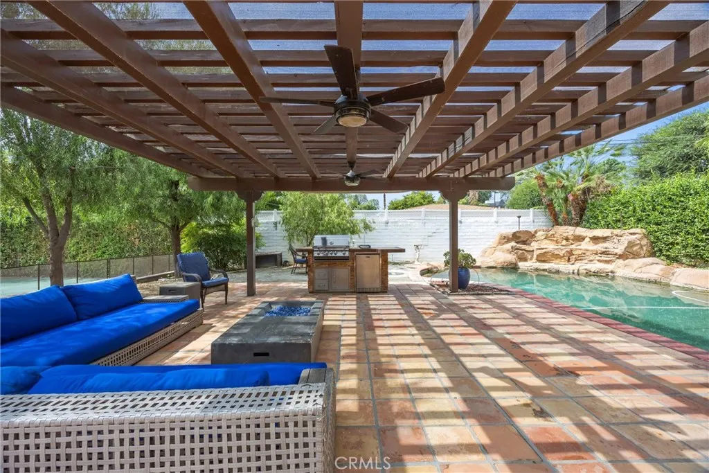 Welcome Home…. to this unique and one of kind villa tucked in Country Club Estates just a short walk to Bakersfield Country Club. The property is a true oasis and features everything your family needs to have your own private resort. The interior boasts high ceilings and open concept complete with fire place and wall to wall tile and large windows . The kitchen is a chefs dream, complete with 3 large wine refrigerator, commercial stove and extra large refrigerator with lots of counter space. The living quarters are spacious with plenty of room for the whole family which include 4 bedrooms and a flex room that gives your family the option for a 4th bedroom. Let’s also include4 well designed bathrooms that round out the living quarters.