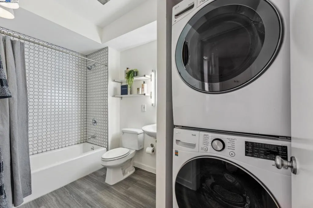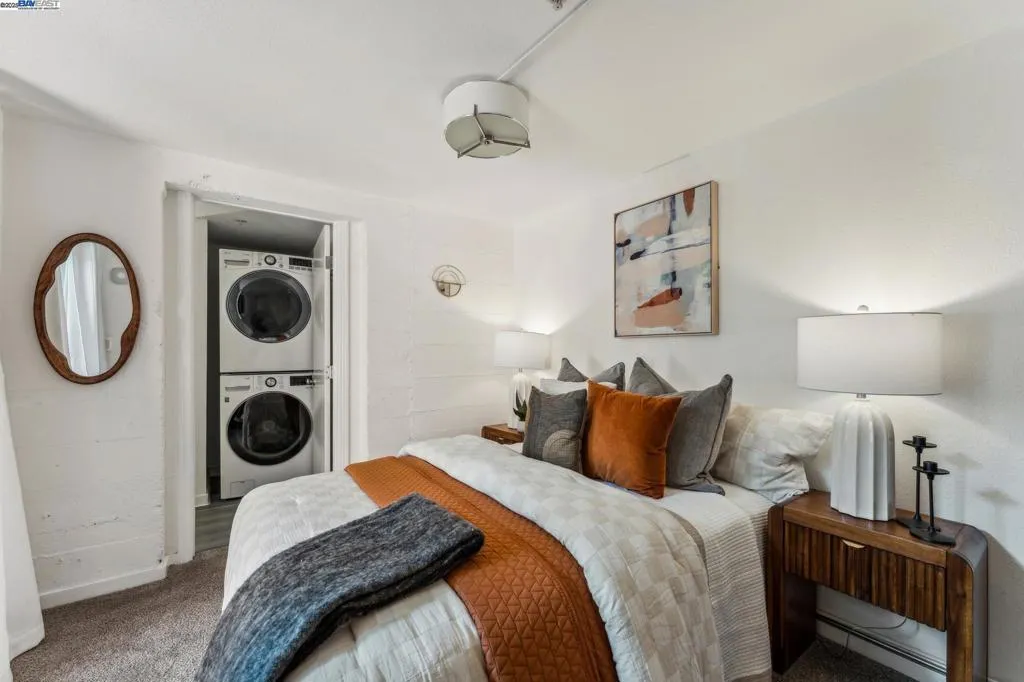 Live, work and create in this oversized 3 bedroom, 2 bathroom, Jack London Square condo that blends industrial edge with modern comfort, uniquely designed for those who thrive in bright, adaptable spaces. Soaring ceilings and expansive street-level windows flood the open living area with natural light while also offering unique visibility for those seeking a live/work lifestyle. At the heart of the home, a chef’s kitchen with Viking appliances and a striking center island create a seamless hub for meals and mingling. Two bonus rooms provide flexible options for an office, studio, gym or client-facing workspace. With generous storage, private rear bedrooms and a floorplan designed for both productivity and relaxation, this home adapts to your needs with ease. Secure parking and a gated street entrance add peace of mind, while shared outdoor spaces extend your living beyond the front door. Step outside to enjoy the waterfront, indie cafés, farmers market and neighborhood energy that defines JLS living. With ferry service to SF, BART and freeways nearby, commuting is seamless – yet entirely optional. This rare opportunity offers professionals, creatives and urban upsizers both scale and style in a vibrant space that balances play with productivity.