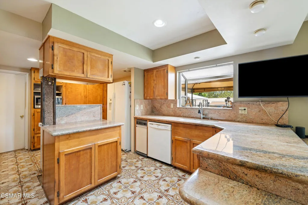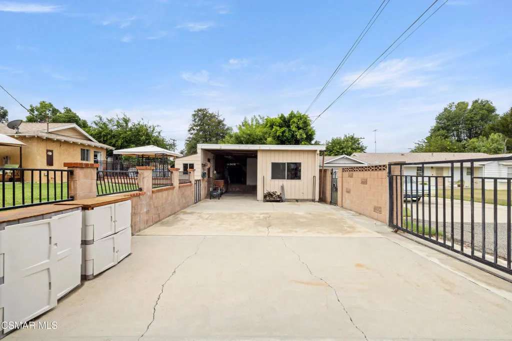 This stunning Tom Paul home is loaded with features. The 10,018 sq. ft. lot has 3 avocado, 1 orange, 1 lemon, and 1 tangerine tree. The back yard features a rolling wrought iron gate which gives access to two large out buildings with covered parking for at least three cars and is fully paved with concrete. The upper level is separately fenced and gated with a manicured lawn with automatic sprinklers. It also features a relaxing spa for those cool Simi Valley evenings. The home itself has a huge 25 X 17 living room with plenty of windows making it light and bright. The expansive family room with wood and gas burning fireplace has a great view of the back yard . The kitchen is very spacious with loads of cabinets, granite, and a garden window with a view. There also several ceiling fans, tons of linen storage, recessed lighting everywhere and of course central air and heat. Another great feature is the added laundry room with up graded electrical panel and again lots of added storage. The washer/ dryer/ and refrigerator are also included. This is a VIEW property