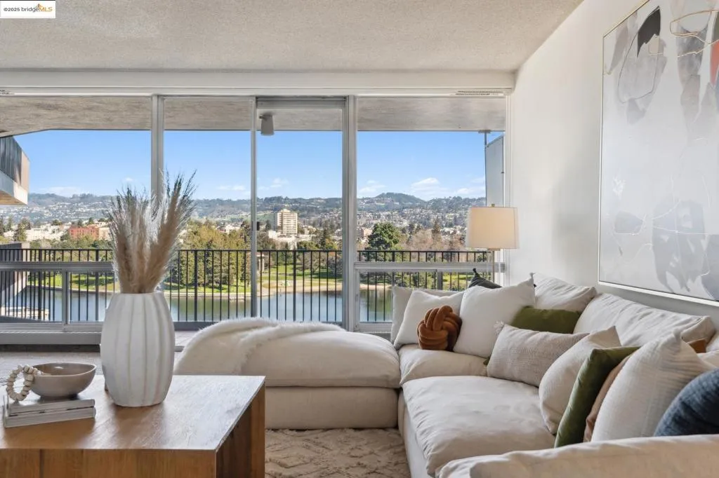 This spacious fifth floor CO-OP condo offers breathtaking, expansive views of Lake Merritt from every window, and from the long balcony that spans the length of the unit. The remodeled eat-in kitchen, fresh paint, new carpet, new modern light fixtures, and open living areas create a warm and inviting space to call home. Two spacious bedrooms have generous closets, and views, and there’s ample hall closets as well. This luxe co-op unit includes one parking space, guest parking, bicycle storage, roof-top access. Water and heat included in dues. Also included are on-site management, maintenance & custodian staff, and 24-hr front desk concierge. $19M seismic retrofit in 2019. Enjoy walks around Lake Merritt, access near to BART, bus, restaurants, museum, and the farmers market. Truly an urban luxe lifestyle.