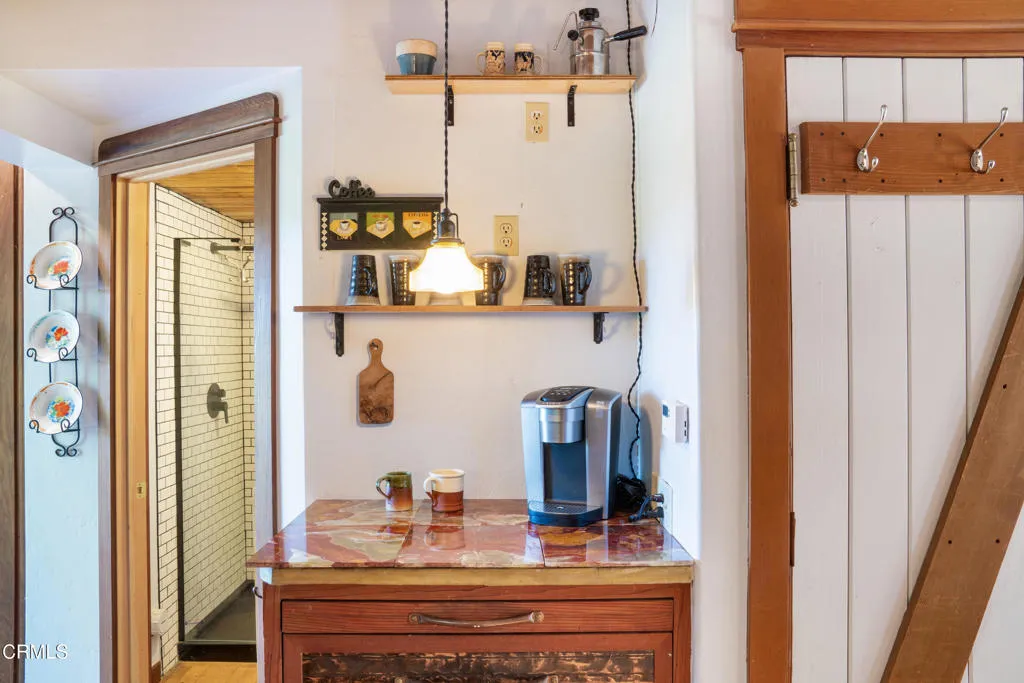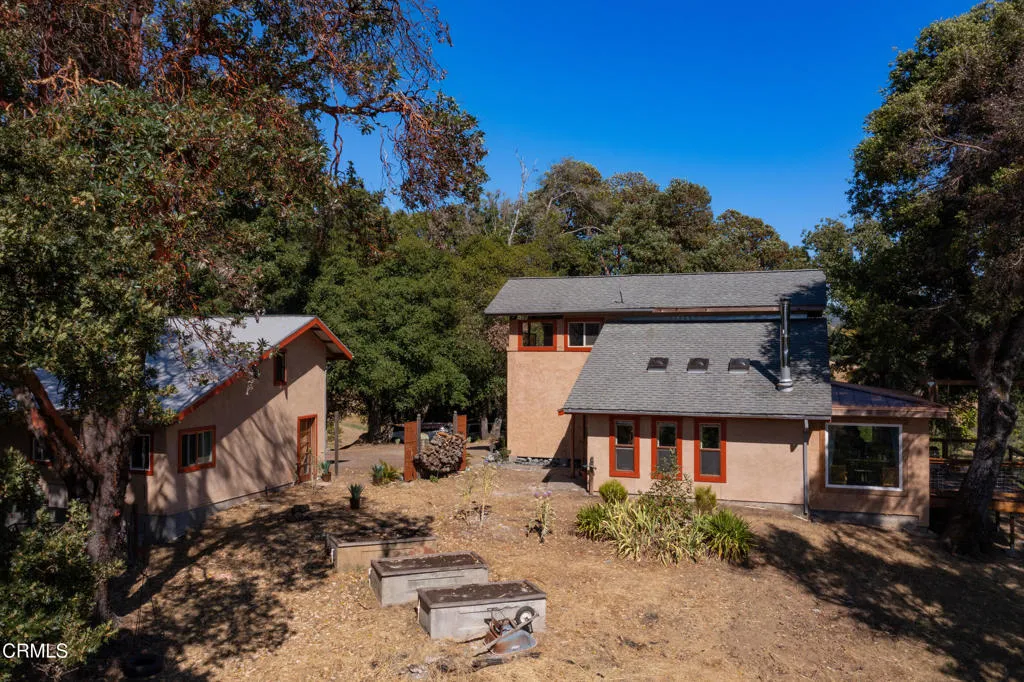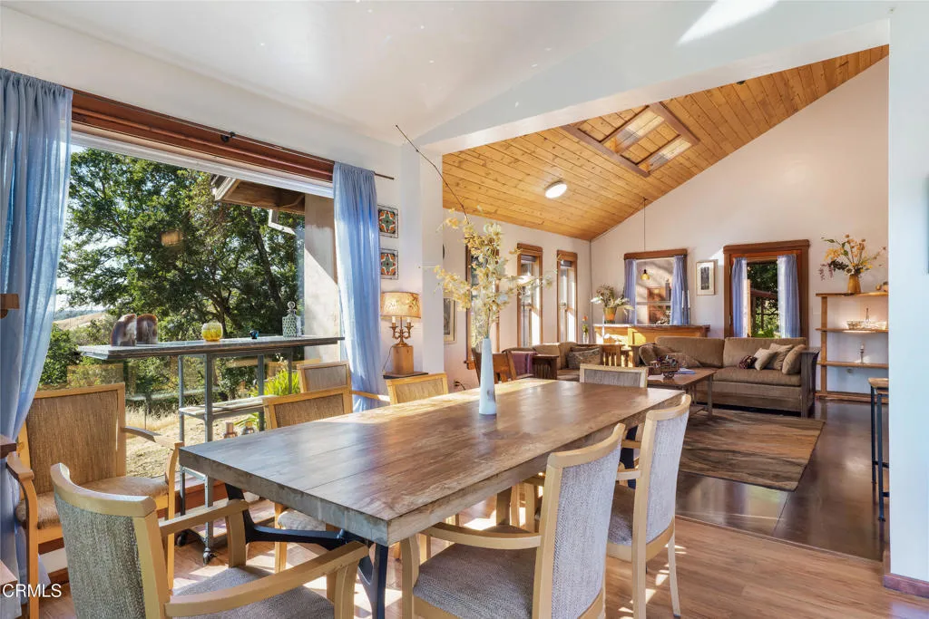 Set atop a hillside in the Heart of Anderson Valley–literally, this Mediterranean-style home with its earthy exterior color offers a vivid contrast to its surrounding foliage and landscape. The main entry gives way to a casual but elegant living room with vaulted ceilings, stained concrete flooring and a wood burning stove. One side of living room opens to the dining and additional living area that flows seamlessly to the outdoor porch. The kitchen and staircase leading to the upper level are also connected to the living room through an ached doorway. In addition, the main level offers a spacious bedroom, a bathroom and a second porch. From nearly every window, you’ll see layered gardens and distant valley and hillside views. The upstairs ensuite includes a bedroom, a bathroom with soaking tub framed by windows offering stunning views of the valley below, an office, and an outdoor open room. This home embodies the indoor-outdoor lifestyle.Set apart from the main house is a detached two-story casita. The ground level is a flexible open space–ideal for guests, a creative studio, or a peaceful retreat. Above, is a private studio apartment with an internal and an external access.Only minutes from downtown Boonville, yet worlds away in feel, this exceptional wine country retreat is a rare opportunity to live in a space that is both cultivated and wild.