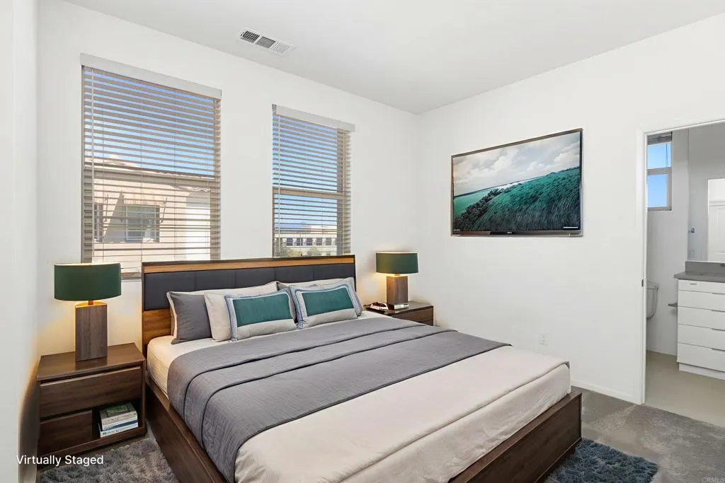 VA approved! This beautiful rare end-unit home in a gated, Oceanside community offers the perfect mix of comfort, style, and convenience. Just minutes from the beach, shopping, and dining, you’ll love the easy access to everything North County has to offer. Inside, you’ll find a bright, south-facing open floor plan with panoramic views and plenty of natural light. The kitchen features modern appliances, lots of counter space, and a large island that’s great for cooking or entertaining. A first-floor bedroom and bathroom provide added flexibility for guests, multigenerational living, or a private home office. Upstairs, the spacious primary suite comes with a walk-in closet and private bathroom. Additional bedrooms are versatile – perfect for kids, guests, or work-from-home space. Step outside to an oversized, professionally designed patio yard, complete with a fountain, built-in BBQ, sink, and propane fire pit great for entertaining or relaxing. Additional features include a tankless water heater with quick hot water, an epoxy garage floor in the two-car garage and dual-zone A/C with a smart thermostat for comfort and efficiency. The community offers fantastic amenities, including a pool, BBQ and picnic area, and three playgrounds, along with well-kept common areas.