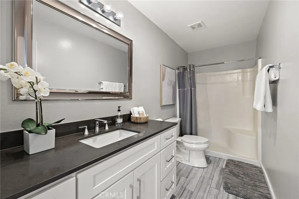Perched on the top level of the Ocean Fairways community, this upgraded two-bedroom, two-bath home offers 1,326 square feet of single-level living and a rare vantage point over the lush fairways of the San Clemente Municipal Golf Course, with glimpses of the ocean beyond. Large windows and a spacious covered balcony draw in light and capture the home’s tranquil setting. Inside, a modern concrete fireplace with custom mantel anchors the open living area. The kitchen combines quartz countertops, subway tile accents, ample cabinetry, and breakfast-bar seating for effortless everyday use. The primary suite enjoys wide golf course views, a generous closet, and an updated bathroom with double vanity and walk-in shower. A secondary bedroom and full bathroom complete the layout, while a dedicated laundry closet adds everyday convenience. Residents enjoy a private, gated community with countless amenities — pool, spa, tennis courts, recreation lounge with kitchen and fireplace, fitness rooms with saunas, and secure building access. HOA dues include water, cable TV, sewer, trash, insurance, and exterior maintenance — offering exceptional value and low-maintenance living. The location is a standout. Set directly across from the San Clemente Municipal Golf Course, the home also offers easy access to Vista Bahia Park and San Luis Rey Park for outdoor recreation. Plus, it’s only .9 miles to Calafia Beach, 1.6 miles to downtown San Clemente, and a short ride to Trestles, one of Southern California’s most coveted surf breaks. Golf cart and e-bike accessibility make it simple to reach beaches, parks, shops, and dining, while the community’s price point offers a more attainable way to enjoy the coveted coastal lifestyle San Clemente has to offer.
