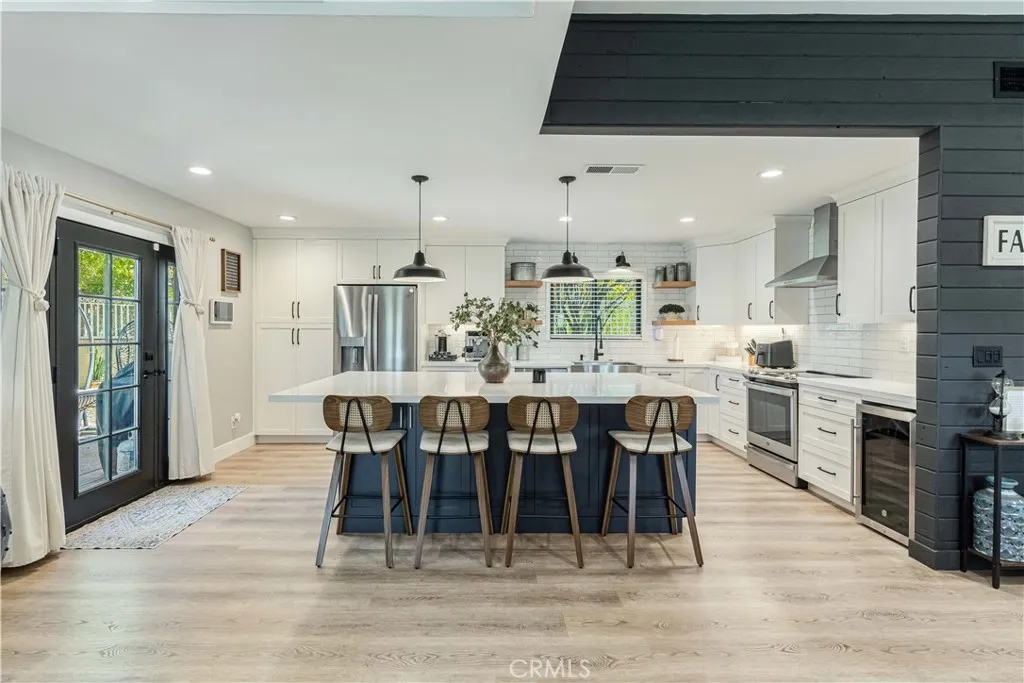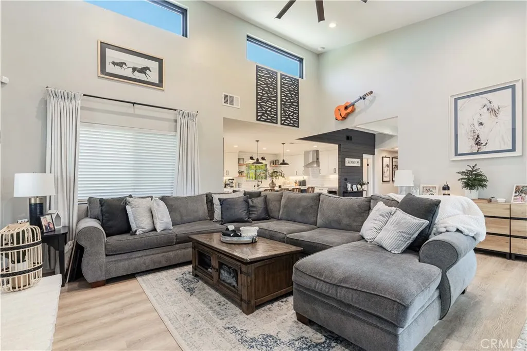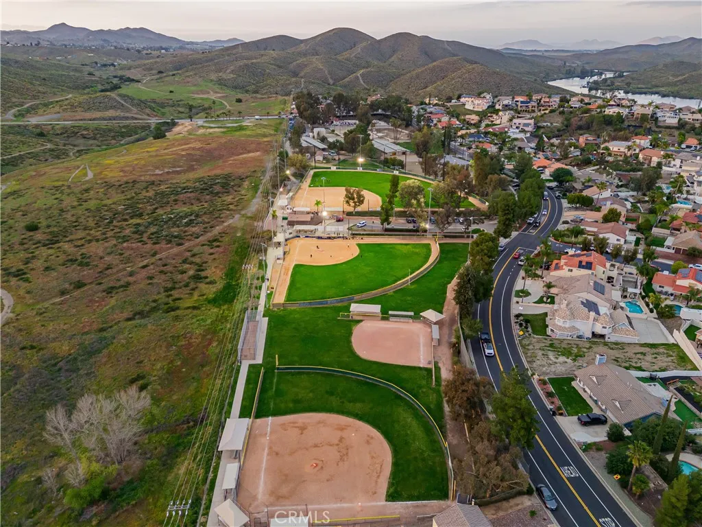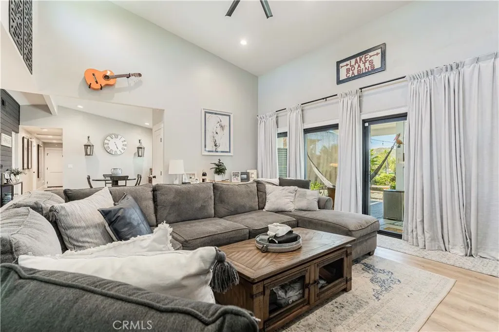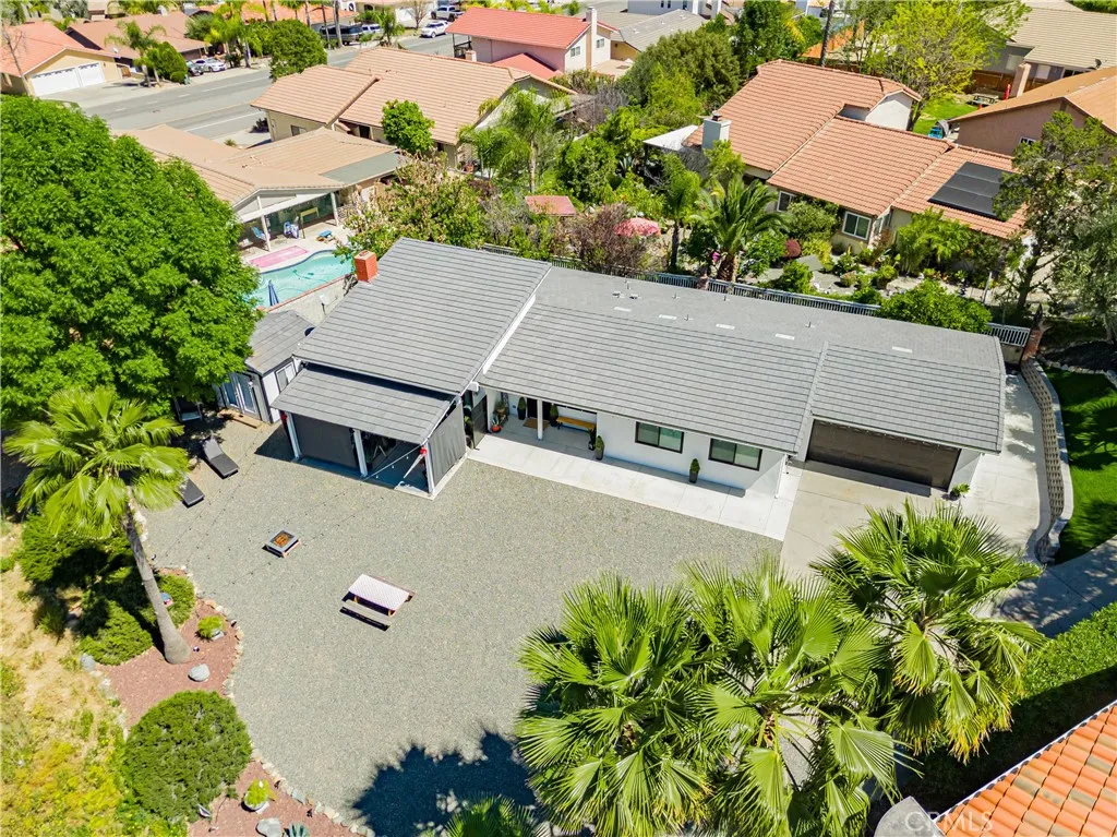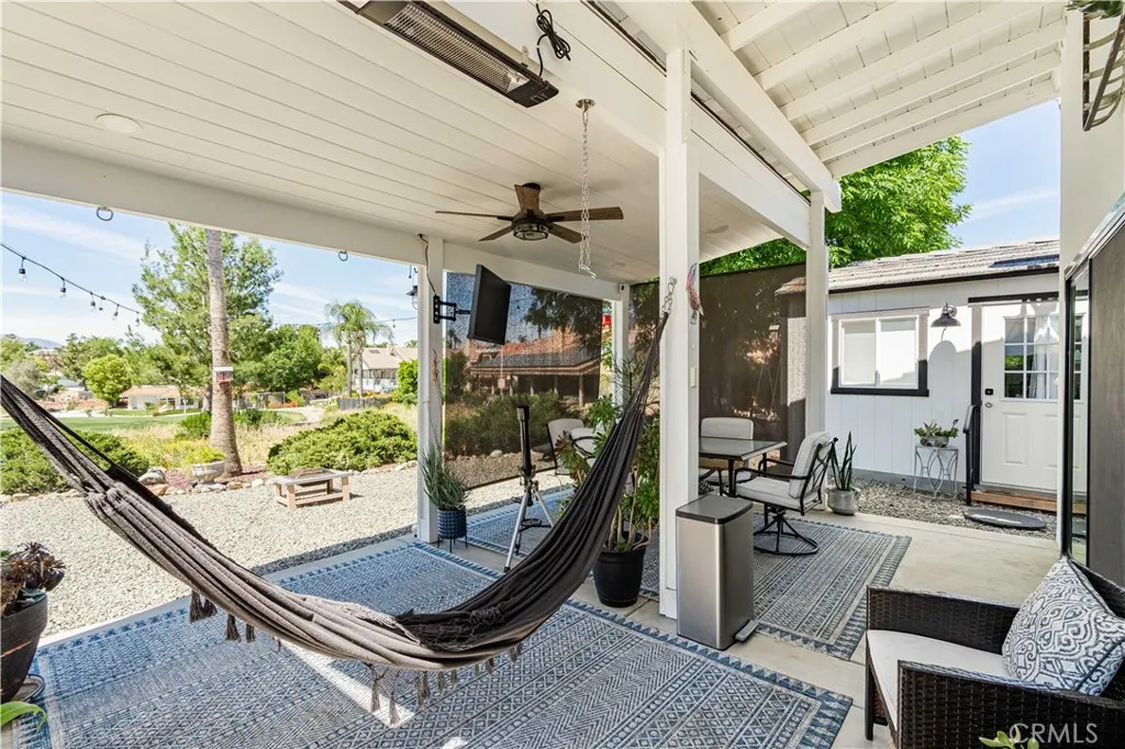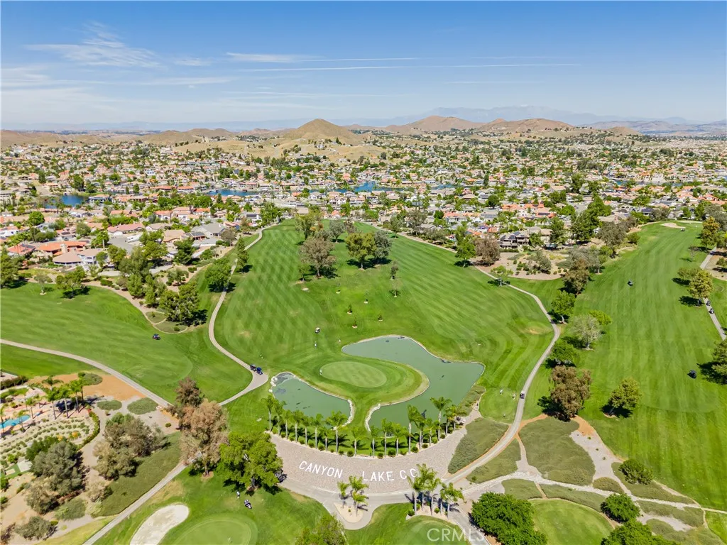SINGLE story ranch home on the GOLF course with amazing sunset VIEWS almost every single night and a huge, flat POOL SIZED lot with RV potential! Welcome to this exceptionally remodeled 3 bed, 2 bath home featuring a one of a kind detached office/she-shed. This lovely home sits on a sprawling 1/3 of an acre of usable land and is nestled right on the green of the 4th hole of the Canyon Lake Golf Course. With 1,448 square feet of thoughtfully designed living space, this home blends comfort, style and functionality in a prime location. Step inside to an open floor plan with vaulted ceilings and an abundance of natural light through all new windows and doors. The great room flows seamlessly into a stunning modern kitchen, where you’ll find a spacious quartz island with counter seating, new beautiful backsplash, custom soft-close cabinetry, stainless steel appliances, a farmhouse sink, updated lighting, wine fridge and a microwave tucked into the island— perfect for entertaining or throwing together some amazing meals with the family. Relax in the cozy living area featuring an elegant fireplace with a custom mantle, vaulted ceilings, lots of windows with great lighting and two huge sliders that look out over your massive backyard, the greenery of the golf course and the mountains beyond. This home showcases fully remodeled bathrooms including a spa-like master bath with a glass-enclosed shower, custom tile work, marble vanity, updated fixtures, new lighting and a sleek barn door for privacy. Additional upgrades include new windows, new doors, new roof, new casing, new trim and fresh paint. The detached versatile shed is equipped with updated floors, lighting shelving, an AC unit and even has an upstairs bunk — ideal for an office, workshop, meditation room or extra storage. This home offers ample parking opportunities and definitely RV potential. Canyon Lake is a distinctive, private gated community designed for golf cart use, featuring a beautiful lake with a ski course, a golf course, extensive hiking, biking, and horse trails, numerous parks and beaches, an elegant community lodge with a restaurant, a remarkable private pool area, sports courts, and much more! Don’t miss your chance to own a slice of paradise in the highly desirable community of Canyon Lake!