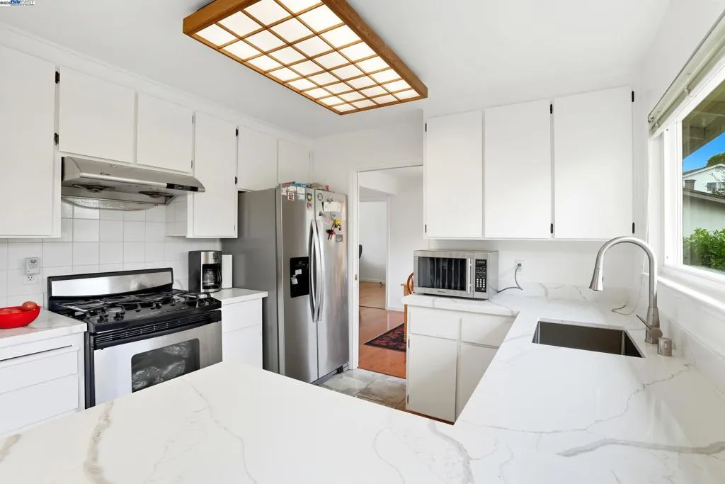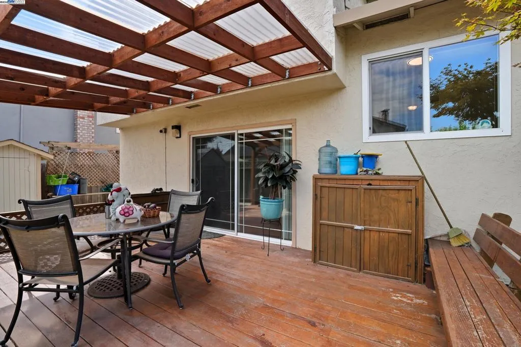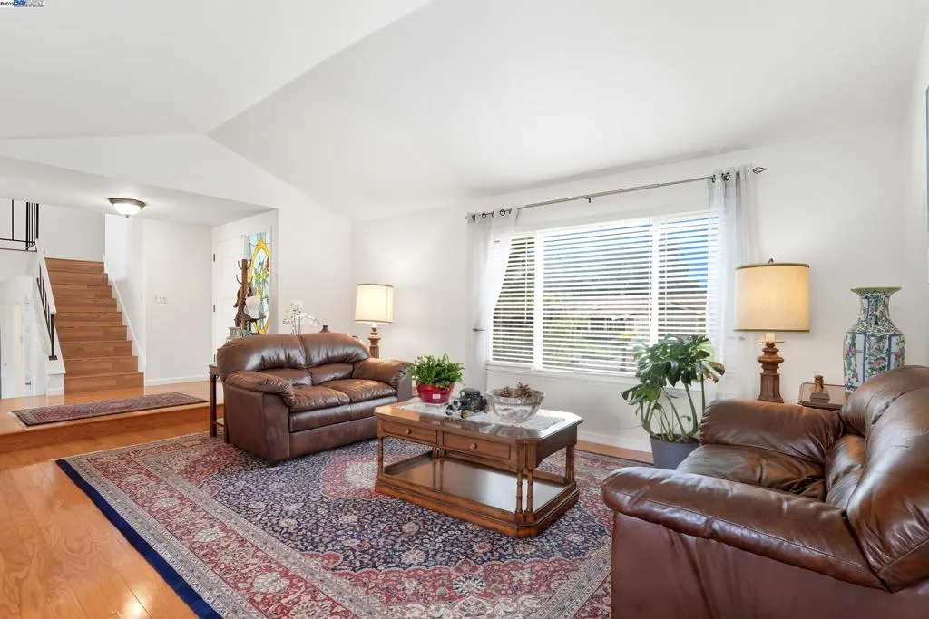 Desirable Silvergate neighborhood with TOP-Rated schools. 5 bedrooms and 3.5 bathrooms with all engineered hardwood floors. Remodel the kitchen countertop, brand new dishwasher. The downstairs has 1 bedroom, a full bathroom, and another half bathroom perfect for guests, parents, or a private home office. 4 bedrooms and 2 full bathrooms are upstairs. The backyard is filled with mature fruit trees. This home offers quick access to shops, dining, BART, and both 580/680 freeways—an ideal combination of convenience, community, and move-in readiness. Solar is financed