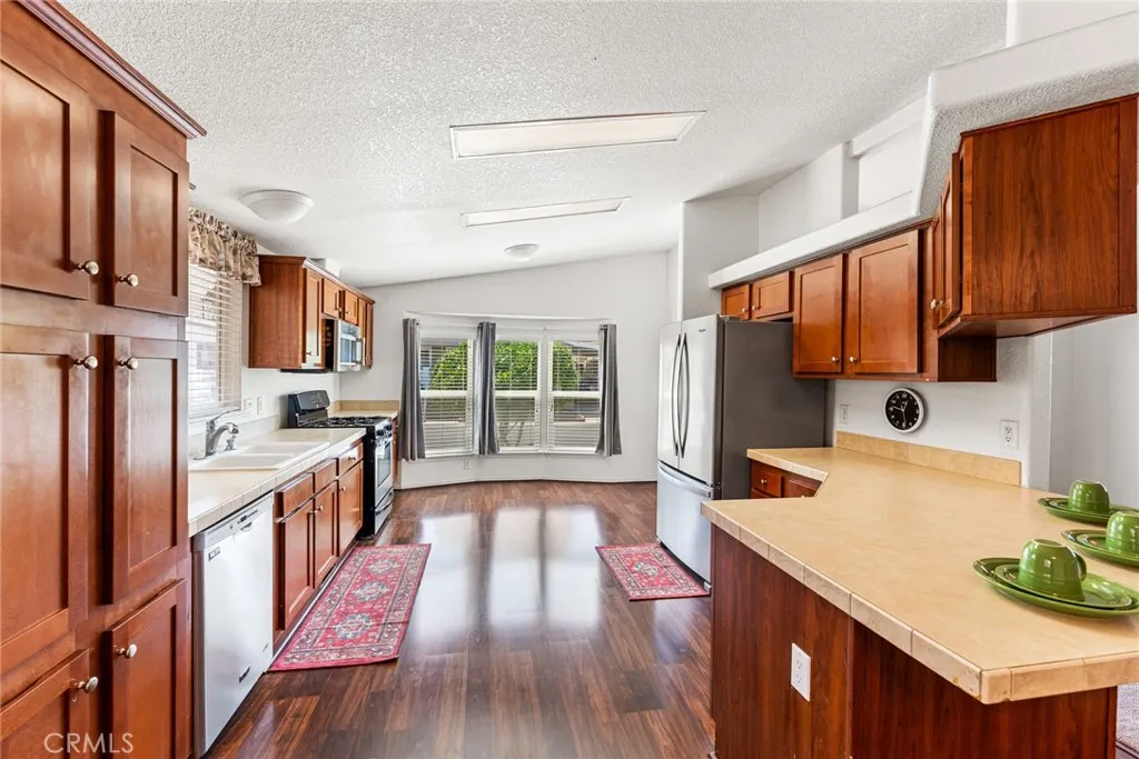 Be settled in this beautiful home before the holidays and enjoy a cup of coffee on the porch. Home is located in the peaceful community of Fairview Park Mobile Home Estates 55+. It offers an open space with natural lighting, Spacious living room with carpet, window blinds and ceiling fan. The ample size kitchen boasts laminate floors, stainless steel appliances, corian counters, a breakfast bar and tons of cupboard space. The 2 bedrooms + den have carpet, window blinds and ceiling fans. Master has a walk in closet and bathroom has separate tub and shower. Indoor laundry, functioning workshop with a/c, electricity and shelving for tools. Home is nicely manicured with some fruit trees and planters. The carport area can possibly fit 3 cars.