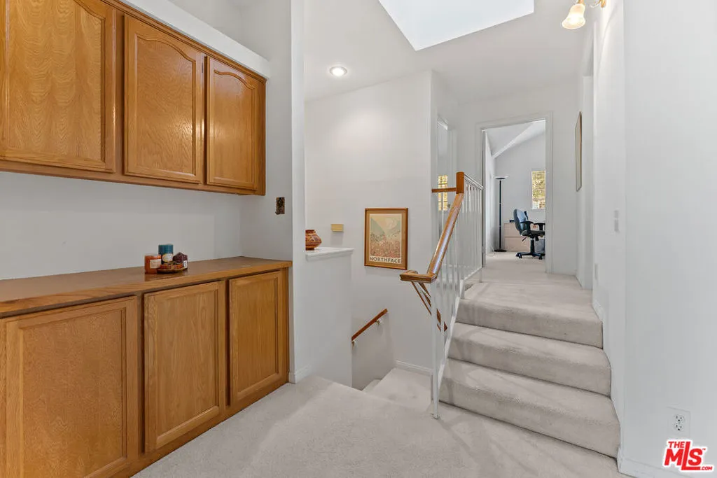 Please Do not miss this opportunity to own this Corner well lighted Townhouse 3 Bedroom 2 1/2 bath at Highly desirable Westlake Village location. Open flow multi level spacious plan with 2 Fire places and 2 car attached garage with built in storage and a nice back yard. Soaring ceilings with natural sky light. Great stylish family home in a great school system. complex has community Pool , spa and BBQ. Lots of guest parking. Owner has downsized, so Furniture included, a baby grand piano, treadmill, sofas ,dining room, office desks and chairs , 2 TV’s and so on