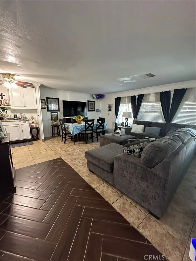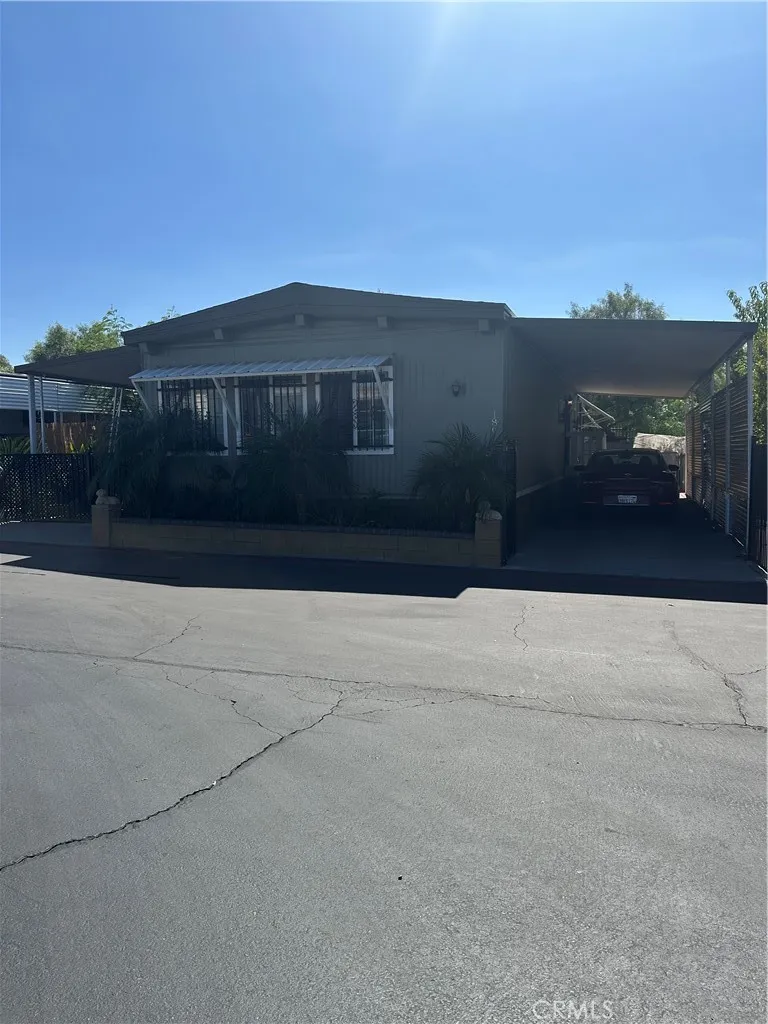 this 3 bedroom 2 bath manufactured home in a tidy hemet mobile home park features central ac and heating, an update kitchen with laminate flooring, laundry hooks ups and a open, spacious layout. Enjoy a three -car driveway, front patio, and a low-maintenance backyard with detached storage adds privacy and extra space.Park amenities include a community pool, recreation room , and guest parking. A practical , comfortable home ideal for modern living in a friendly park setting