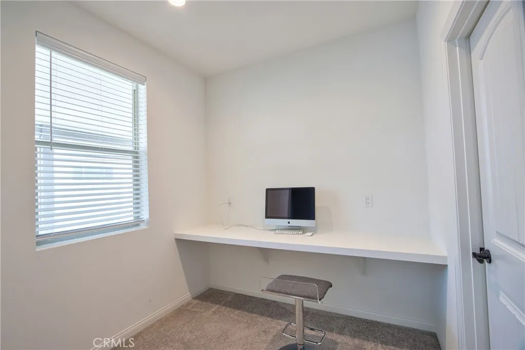 The chef’s kitchen is the centerpiece of the home, featuring upgraded granite countertops with mitered edges and 34.5” counter heights, premium appliances, 42” cabinetry, pull-out shelving, and a large island that opens to the great room and backyard through a 12-foot sliding glass door—ideal for entertaining and family gatherings.