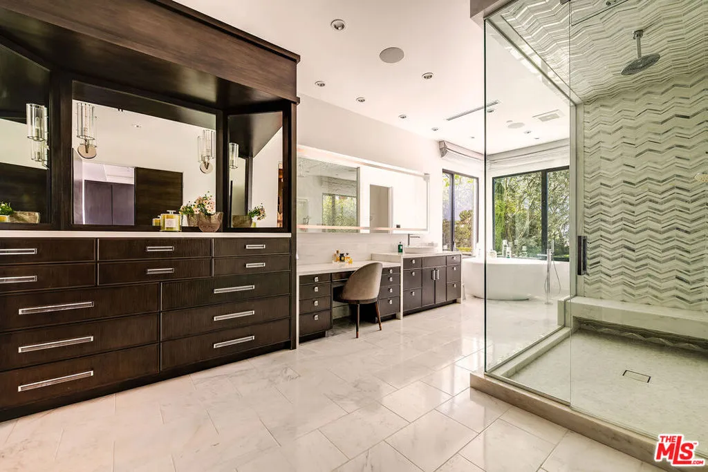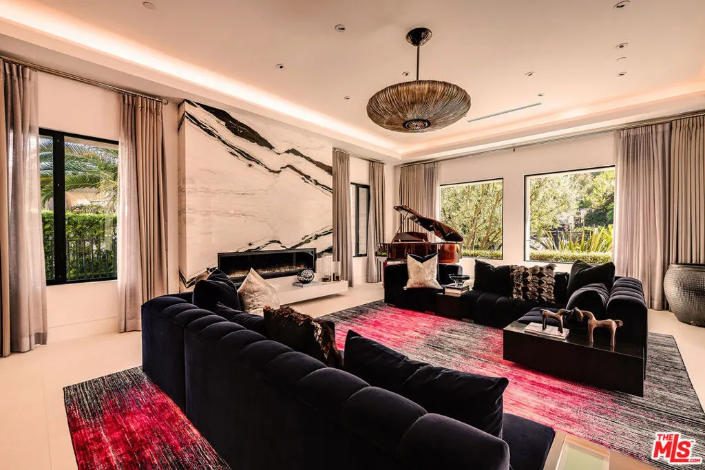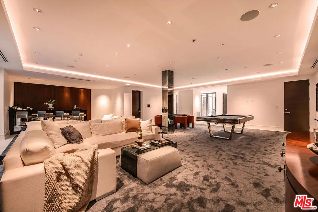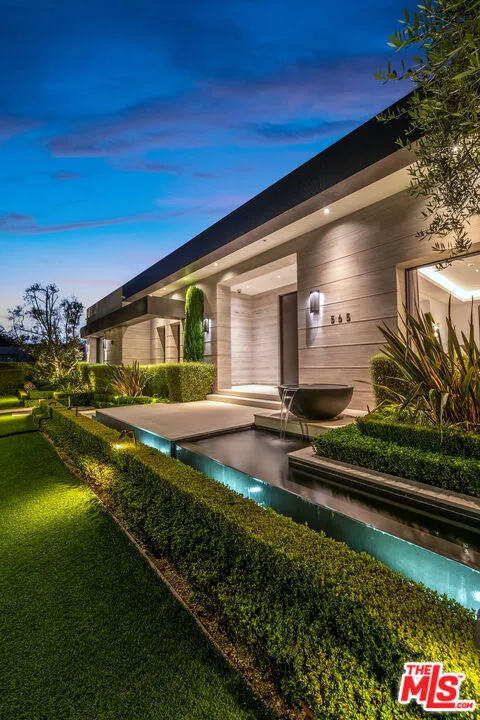 Nestled in the heart of the legendary Trousdale Estates of Beverly Hills, 565 Evelyn Place is a custom-built modern architectural triumph that fuses precision craftsmanship with warm livability. Completed in 2017, this residence was envisioned as a statement of timeless contemporary design sculpted lines, dramatic volumes, and a seamless indoor-outdoor flow that celebrates the Southern California lifestyle. From the moment you approach, the home commands attention. Expansive glass openings frame serene water features, while the landscape unfolds in a series of intimate gardens and gathering spaces. Inside, natural light pours through open volumes, highlighting a sophisticated materials palette of walnut, limestone, and custom Italian marbles. A state-of-the-art lighting program offers pre-set ambient scenes, while Conrad electric shades provide effortless privacy and control.At the center of the home is a breathtaking Poggenpohl kitchen, clad in rare Borghini Carrara marble and meticulously outfitted for both passionate cooks and professional entertaining. Two Miele dishwashers, three integrated refrigerators, a full 60-inch range with steamer oven, a built-in coffee system, and three sinks allow for seamless culinary preparation. A discreet butler’s pantry and a fully equipped second kitchen downstairs support large-scale entertaining while preserving the kitchen’s sculptural elegance. Every living space has been designed for both intimacy and spectacle. The home features three dramatic wet bars with ice makers, a library wrapped in hand-painted wallpaper and custom walnut millwork, and a series of lounges anchored by bespoke fireplaces some leathered marble, others sculpted from specialty stone. The floor plan opens effortlessly to lush gardens and resort-inspired outdoor living, where a full kitchen with BBQ, stovetop, and ice maker joins a fireplace, integrated heaters, and tranquil fountains. A separate courtside stone entertaining area invites long, sunlit afternoons and evenings under the stars. The primary suite is a private sanctuary, featuring walnut floors, dual steam showers, heated bathroom floors, and exquisitely detailed Italian marble baths. Thoughtful luxuries such as a dedicated suite refrigerator elevate comfort to the highest level. Throughout the home, technology quietly enhances everyday living with Crestron whole-house control of lighting, climate, sound, and security. Additional comforts include a central vacuum system, a private elevator, and a five-car garage finished with the same level of detail as the living spaces. A custom-designed gym completes the experience, while water features and curated landscaping lend a sense of tranquility and escape. Every detail of 565 Evelyn Place reflects a passion for design and an uncompromising standard of craftsmanship. This is more than a home, it is a modern estate built for those who value artistry, innovation, and the enduring prestige of one of Beverly Hills’ most sought-after enclaves.