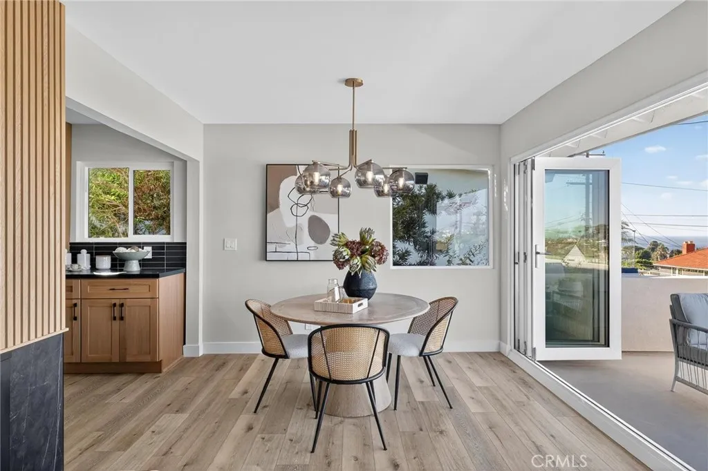 Elevated views, stunning design, and a coveted location—this fully remodeled 4-bedroom, 3.5-bathroom home in the heart of the Hollywood Riviera delivers refined coastal living with thoughtful updates throughout. Upstairs, expansive accordion glass doors blur the line between inside and out, opening the living room, dining area, and designer kitchen to a spacious deck where views stretch from the Pacific Ocean to downtown Los Angeles. The bold, modern kitchen features natural wood cabinetry, striking black quartz countertops, open shelving, and stainless steel appliances. All three top-floor bedrooms are generously sized, including the primary suite, which opens directly to the back deck and view. The ensuite bathroom features sleek, modern finishes, and every bathroom throughout the home has been fully remodeled with cohesive, tasteful design. Downstairs is a flexible extension of the home, offering a series of bonus spaces ready to adapt to your lifestyle. A spacious retreat—ideal as a second primary suite, media room, or quiet lounge—is anchored by a large bathroom with double vanities, soaking tub, and walk-in shower. Around the corner, an additional bonus area offers room for a home office, exercise space, or playroom, while the oversized laundry room brings both function and flexibility to the layout. The exterior is just as impressive, with fresh drought-tolerant landscaping in front and a peaceful backyard that features a brand-new pergola—perfect for evening relaxation or weekend entertaining. Located in one of the most desirable sections of the Hollywood Riviera, you’re just minutes from the beach, Riviera Village, scenic oceanfront trails, and award-winning local schools. This is the best of coastal South Bay living—move-in ready and designed for modern life.