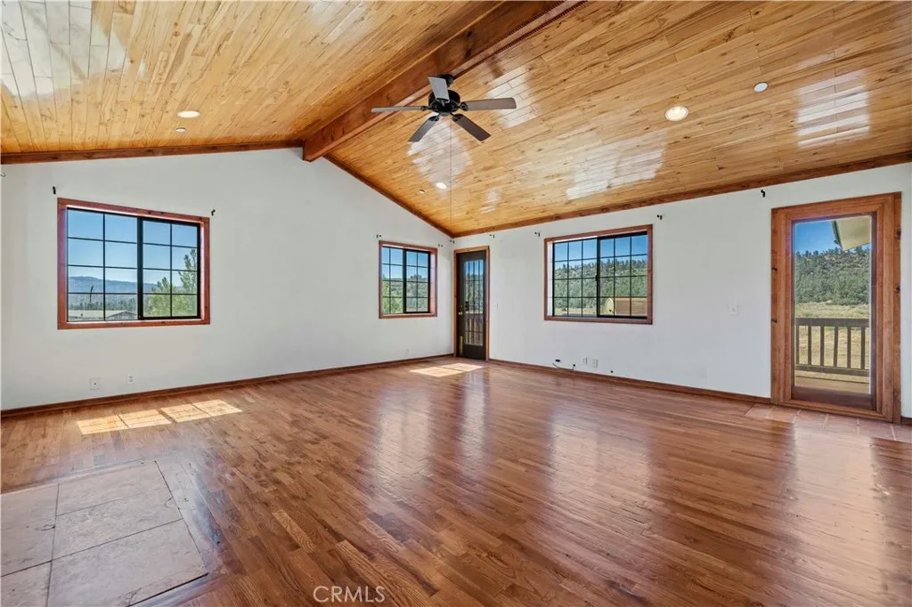 Nestled in the mountains and surrounded by natural beauty, this magnificent estate combines timeless craftsmanship with modern updates on over 5 acres bordering 600 square miles of National Forest. Recently refreshed with new exterior and interior paint and beautifully refinished hardwood floors, the single story custom home offers sweeping panoramic views and trails right outside your door. The residence features 5 bedrooms, 2.5 bathrooms, and nearly 3,600 square feet of thoughtfully designed living space. The expansive living room showcases vaulted ceilings with exposed beams, while the chef’s kitchen is equipped with a walk in pantry, double oven, marble countertops, artistic backsplash, custom cabinetry, and a striking butcher block island. Radiant heated floors warm the kitchen and dining areas, and three fireplaces add inviting charm throughout the home. The primary suite is a private retreat with vaulted ceilings accented in exotic Asian birch, a cozy fireplace, and a spa inspired bath with a cast iron tub and oversized shower. Built for both beauty and resilience, the property includes a lifetime metal roof, full sprinkler system, dual propane tanks, boxed in eaves, complete fencing with an electric gate, and a backup generator powering the entire home and well pump. Equestrian facilities include corrals and a powered tack room, offering a ready made retreat for horse enthusiasts. Located just 45 minutes from Santa Clarita, this rare estate delivers the perfect blend of seclusion, modern updates, and timeless natural beauty.
