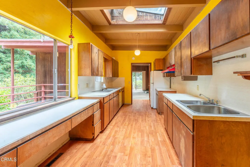 Down a quiet and paved lane to the end of the road is this private Mendocino home in a great neighborhood featuring high ceilings, sky lights and spacious rooms. Grand beautiful Redwoods rim the perimeter, but this lot also has light filled areas of sun to enjoy as well. Minutes to the Village, and in the desirable Mendocino School District, this is a perfect investment home to add some improvements, upgrades, and personal touches. 2 bedroom 2 bath with additional separate space for potential guests. Reports have been done, so this home awaits someone to bring it forward to the next phase. Lots of potential here! Make this home your own, and enjoy all the Coast can offer!