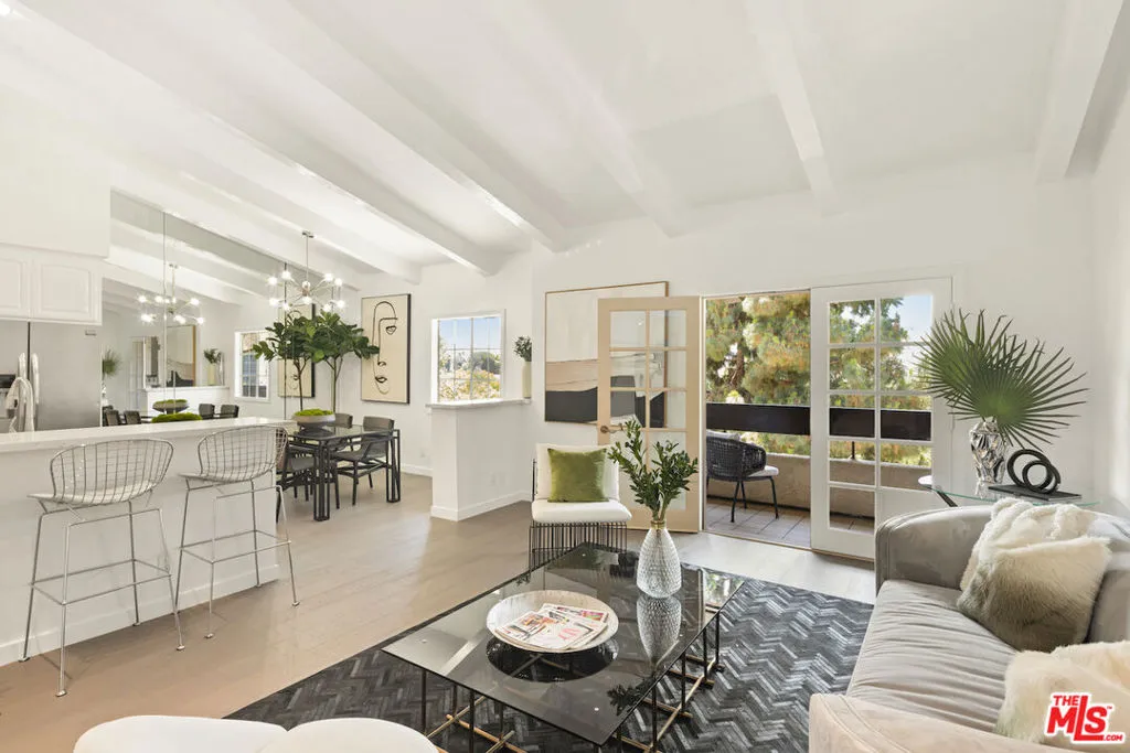 With sweeping views of the enchanting Hollywood Hills, this top-floor 2BD/2BA condo is a rare retreat where golden-hour sunsets and treetop vistas set the stage for everyday canyon magic. Inside, soaring vaulted ceilings and southwest light create an airy, expansive feel. The balcony off the living room with french doors faces westward to enjoy daily sunsets and treetop views. Stylishly remodeled throughout, the home features wide-plank hardwood floors, designer lighting, and a sleek open-concept kitchen with stainless steel appliances against a backdrop of glamorous Milan white quartz counters with a continuous backsplash — an ultra-elegant yet highly functional design. The primary suite offers spa-like comfort with a deep soaking tub, oversized shower, bidet and refined finishes. A whimsical upstairs loft once curated as a Moroccan-style lounge adds an unexpected escape and can be easily reimagined as a meditation area, reading nook, or nap space. Life at the Cahuenga Hills Tennis Club is resort-style and serene. This guard-gated community spans 15 lush acres and offers three tennis courts, two swimming pools and spas, a modernized gym with top-tier equipment, saunas, clubhouses, sun decks, private hiking trails around Lake Hollywood, dog parks, and plentiful guest parking. Perfectly positioned just minutes from the Hollywood Bowl, Studio City, Los Feliz and LA’s most iconic shops and restaurants, this home is as connected as it is private. Added conveniences include a washer dryer in-unit, double paned windows, and newer HVAC. See HOA coverage in Agent Remarks. Come see this beauty and experience Hollywood Hills living.