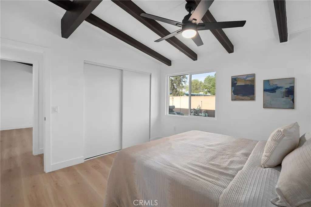 MID-CENTURY MODERN | FULLY REMODELED | CORNER LOT WITH POOL Welcome to 2075 E Benwood St — a stunning mid-century modern home that has been completely reimagined with today’s lifestyle in mind. Step inside to an open-concept living space with soaring ceilings, exposed beams, and brand-new drywall that make the home feel bright, airy, and inviting. The layout flows seamlessly into a designer kitchen with all-new cabinetry, countertops, and appliances — perfect for everyday living and entertaining. Upgrades completed with permits include: ALL NEW fully rewired electrical with 200 AMP panel, New central AC & furnace with Slim unit, New dual-pane windows, New interior and exterior doors, New luxury vinyl plank flooring, New ceiling fans, fully remodeled bathrooms, fresh paint inside and out, and new baseboards. The backyard is your private retreat with a re-plastered pool featuring a new waterfall and new tile, a cozy fire pit area, fresh landscaping with mature Orange, Lemon, and Pomegranate trees, and plenty of space to relax or host gatherings. Sitting on a corner lot, the property also offers potential for RV parking, garage expansion, or an ADU. Enjoy the convenience of being walking distance to Glen Oak Elementary, Life Pacific University, San Dimas Community Hospital, Costco, Sam’s Club, and Bonelli Park, with commuters appreciating quick access to the 210, 57, and 10 Freeways as well as the Covina Metrolink station. This is a rare opportunity to own a stylish mid-century modern home that blends timeless design with modern comfort —COME, SEE THIS HOME BEFORE IT’S TOO LATE!
