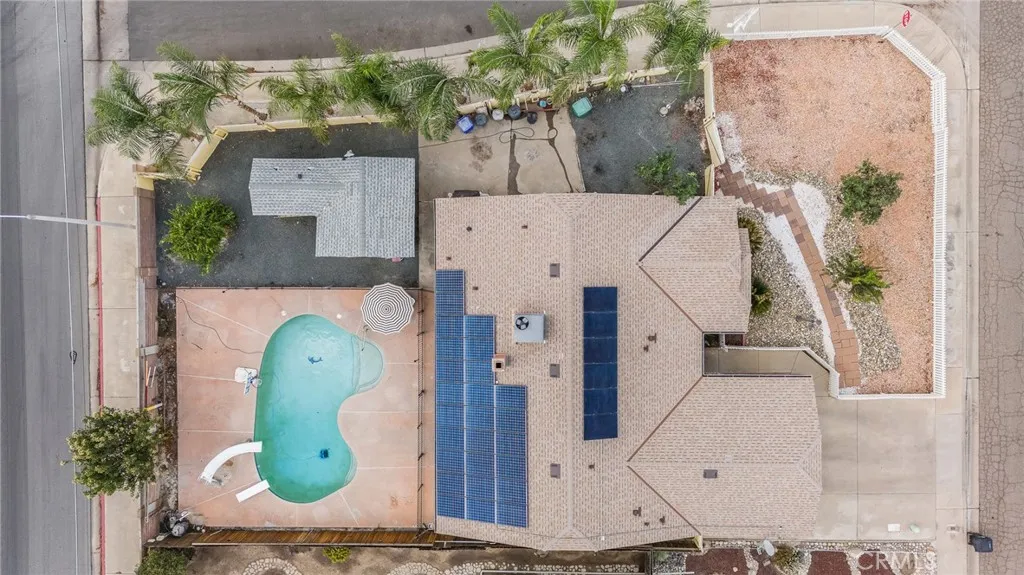 Pride of ownership shines in this beautiful home featuring a charming white picket fence and a low-maintenance yard. Offering 3 bedrooms, 2 bathrooms, this home boasts an open-floor plan with a cozy gas fireplace, new carpet in the living room and slider leading to the patio overlooking the pool. The kitchen offers plenty of cabinets and granite countertops. Indoor laundry is equipped with more storage. Large primary suite with a slider to the backyard. The ensuite feels like a private oasis, featuring dual sinks, lots of counter space, enclosed glass shower and a relaxing jetted tub, and a spacious walk-in closet. The backyard is perfect for entertaining, complete with a large, covered patio and a fenced pool with a slide and diving board. Plus, there’s a bonus—a detached ADU with 1 bedroom and 1 bathroom and owned/leased solar! All situated on a large corner lot, this home is a must-see!