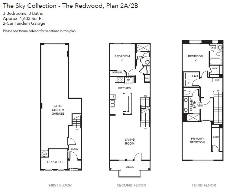 This thoughtfully designed “Redwood” floorplan features a two-car garage, entryway and a great space for a work from home office on the first level. The second floor is your main living level and features a spacious kitchen with large eat-in island, an open living room, a full bedroom/bath and a large outdoor deck. On the upper level you’ll find a conveniently located laundry room, your large primary suite with walk-in closet and a secondary bedroom with its own walk-in closet and private en-suite bath.