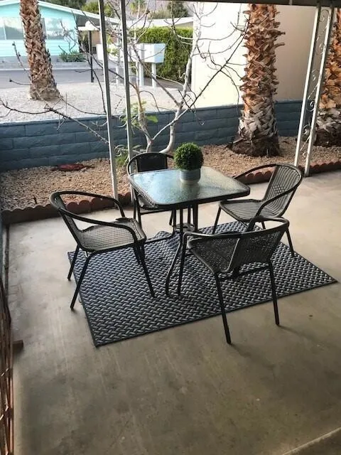 BRAND NEW TILE ROOF!!! BEAUTIFULLY REMODELED!!! TOTALLY FURNISHED!! TURNKEY HOME!!! This immaculate home looks like it was designed & furnished by a professional decorator, come see and you’ll agree – it’s a showstopper! Designer furnishings throughout the home include a 6-seat wooden dining table & chairs, sofa and accent chair, coffee table, carpets, television, 2 bedrooms sets w/ designer bedding bedding, 4 barstools & more!! Eye catching, graphic wall paper on select accent walls throughout the home add to the artistic look. Fabulous bathrooms with tiled, walk in showers! Huge Master bath with stunning shower and dual vessel sinks! This home is move in ready – Dishes, cookware, glassware, silverware… it al!! Enjoy sunsets on the furnished side patio with amazing mountain views. Close to The El Paseo Shopping & Dining Corridor and across from the Living Desert. Fabulous Club House with year round heated pool, and large spa. Rent controlled park with low land fee of $712.97monthly. Privately owned park. Rent controlled, leased land. Not Indian Land. Subletting allowed after 1 year of residency.