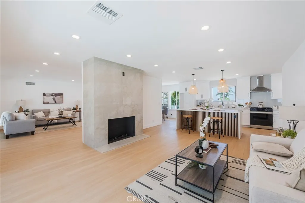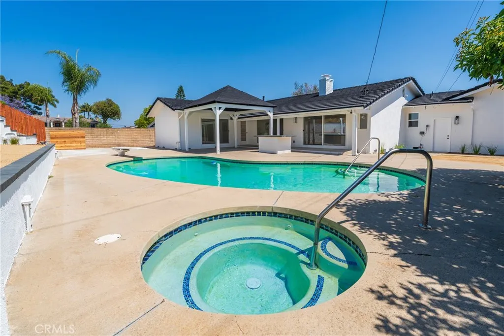*Resort-style living in the Fullerton Hills!* Welcome to this beautifully renovated single-story, 2-car garage home, where modern design meets luxurious comfort. Located in a highly desirable neighborhood of Raymond Hills in Fullerton, CA. Fresh and clean curb appeal with new landscape and exterior paint. This stunning property boasts a spacious open floor plan with 3 generously sized bedrooms and various premium features that elevate your living experience. 2.5 bathrooms have been tastefully renovated with modern mid-century touches. Step inside through a beautiful custom door and be greeted by the inviting ambiance of the formal living room, enhanced by recessed lighting, new white interior paint, and premium laminate wood flooring throughout the entire home. All new windows and sliding doors. The heart of this home is the chef-inspired kitchen, complete with gleaming quartz countertops, all-new stainless-steel appliances, shaker-style slow-close cabinetry, and a custom kitchen island with a sleek waterfall finish perfect for both cooking and entertaining. There is a chic family room with a tiled fireplace where you can enjoy views of the sparkling swimming pool. Large dual sliding doors open up to your backyard oasis to host all of your special gatherings. With its thoughtful design, premium finishes, and a fantastic layout, this home is the perfect blend of modern living and maximum comfort. Great location with the award-winning Fullerton Joint School District and entertainment destinations. Don’t miss this opportunity to make this property your DREAM HOME!