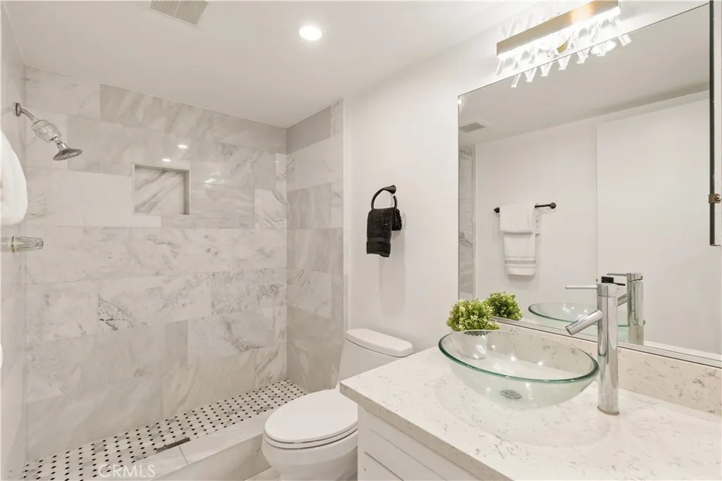 Welcome to your coastal retreat! This is a Single Family Residence, Planned Unit Development located in a private community of only twenty homes at the end of a quiet cul-de-sac. Enjoy resort-style amenities including two full-size tennis courts, a pool, spa, and clubhouse, all within walking distance to the ocean.This beautifully upgraded end-unit home features a fully remodeled kitchen with custom cabinetry, new countertops, upgraded appliances, and a spacious island that opens to the living room. The inviting living area offers a fireplace, bar/coffee nook, and direct access to a back patio. Upstairs, the primary suite showcases ocean, Catalina, and sunset views from a private balcony, a second fireplace, a walk-in closet, and a luxurious spa-inspired bath with dual sinks, jetted tub, and separate shower. The secondary bathroom has also been tastefully remodeled.
