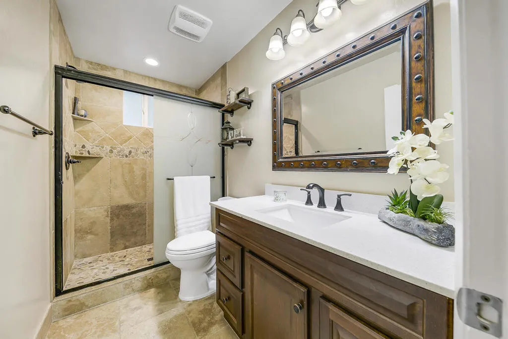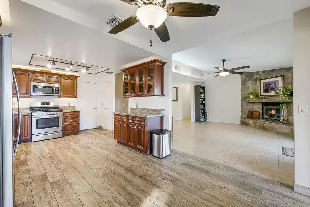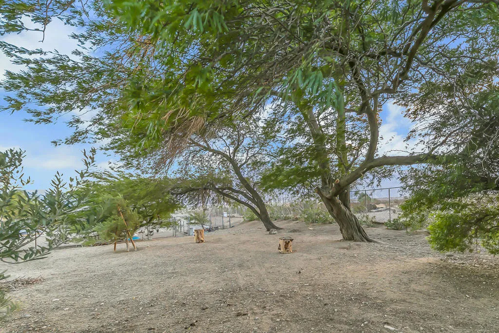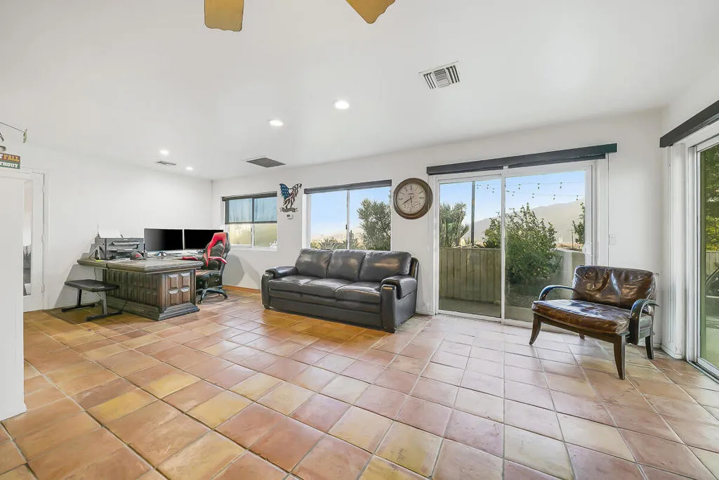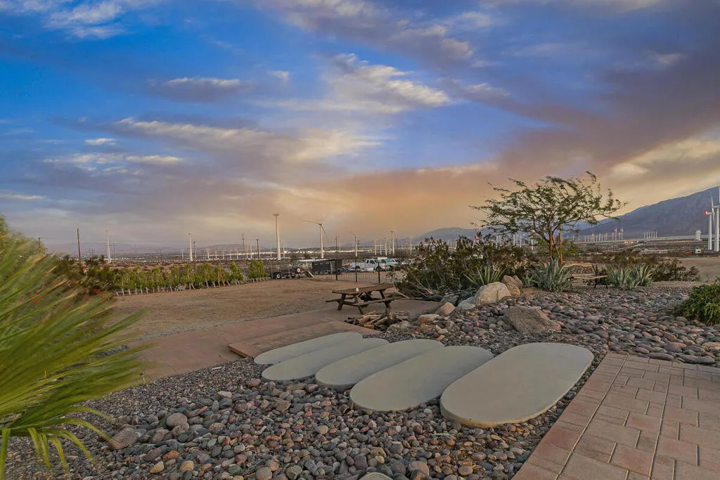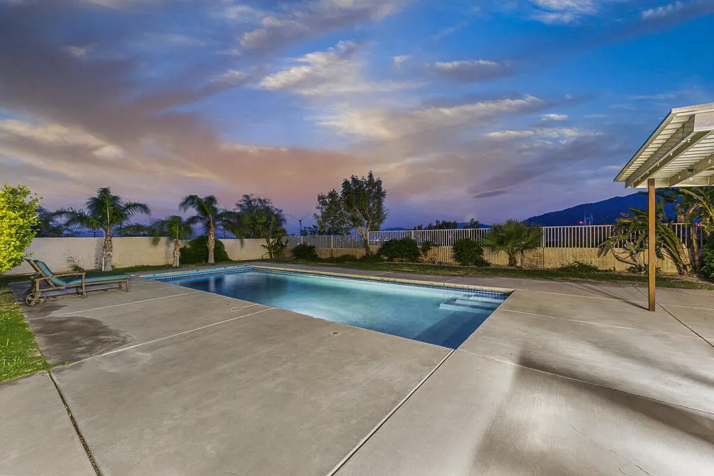 Experience the rare blend of mountain serenity and versatile functionality with this 5-acre residential/industrial zoned estate, perfectly positioned just minutes from I-10 and Hwy 62.The charm of desert living just minutes away from Joshua Tree National Park! Nestled between the San Gorgonio and San Jacinto Mountains, this property offers panoramic desert and mountain views that set the tone for daily living.The main residence (2,097 sq. ft.) features 3 bedrooms and 3 baths, a remodeled kitchen (2021) with modern appliances, a walk-in pantry, bay window, and porcelain tile flooring. Enjoy evenings by the large stone fireplace, or entertain in the oversized family room with wet bar, Saltillo flooring, and its own dedicated HVAC system.Step outdoors to your private retreat: a sparkling pool with automatic cover, freestanding spa, fire pit lounge, and multiple covered patios framed by queen palms, citrus orchards, and desert landscaping with surface drainage for low-maintenance peace of mind.The property also includes a guest house (1 bed/1 bath) with private patio, fire pit, and lush landscaping–perfect for multi-generational living, rental income, or hosting.For hobbyists and entrepreneurs, the estate is unmatched: 720 sq. ft. container car shop with 9,000 lift, mini-split A/C & swamp cooler 820 sq. ft. detached garage/workshop 684 sq. ft. boat garage with separate entrance 5 gated entrances (automatic front gate, block/iron fencing) 2 horse stalls & coral chicken coopEnergy-efficient features include a tankless water heater and 100-gallon propane tank. All appliances convey (except garage freezer).Whether you seek a desert retreat, an income-generating compound, or a unique live/work property with residential and industrial potential, this estate is a rare find offering lifestyle, functionality, and mountain beauty in one.