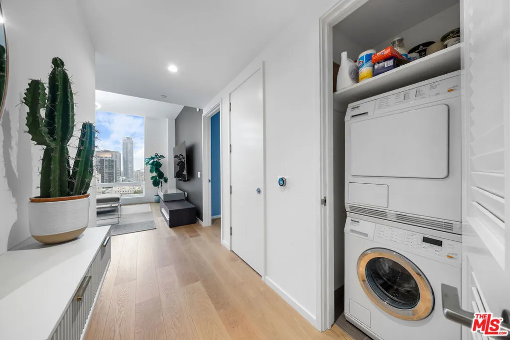 Experience the perfect blend of sophistication and modern luxury at Metropolis II, one of Downtown LA’s premier high-rise communities. This stylish 2-bedroom, 2-bath residence showcases floor-to-ceiling windows, wide-plank wood flooring, and breathtaking panoramic views of the iconic city skyline. Designed for both comfort and entertaining, the open-concept layout flows effortlessly from the living and dining areas to the chef-inspired kitchen. Outfitted with top-of-the-line Miele appliances, designer finishes, and a generous center island with a built-in beverage chiller, the kitchen is the ideal space to cook, host, and createall while enjoying the dazzling city lights. Adding to its exclusivity, this home is located on one of only three levels at Metropolis II that boast exceptionally high ceilings, enhancing the sense of space and light. The sun-drenched primary suite offers a tranquil retreat with a spa-like bath and expansive closet, while the second bedroom provides flexibility for guests, a home office, or creative studio.As a resident of Metropolis, you’ll enjoy an impressive collection of amenities including a resort-style pool, state-of-the-art fitness center, business center, private screening room, 24-hour concierge, and a dedicated dog park. Perfectly situated in the heart of DTLA, you’re moments from world-class dining, shopping, cultural landmarks, and even a Starbucks conveniently located at the neighboring Indigo Hotel. Don’t miss your chance to live in one of Los Angeles’ most sought-after addresses, where every day feels like a luxury escape.