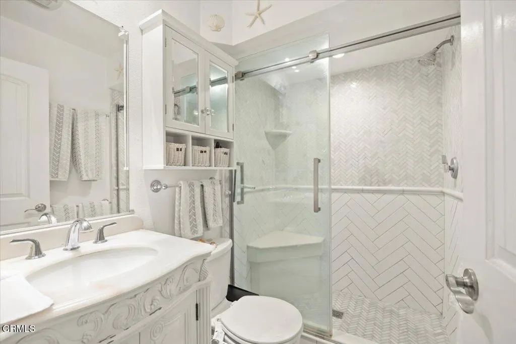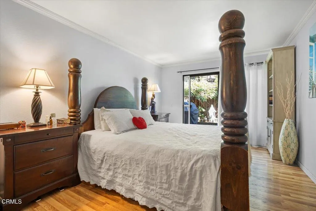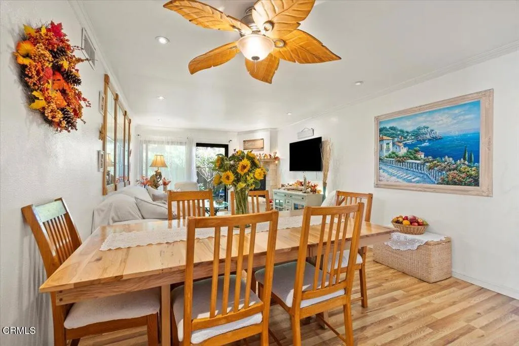 Beautifully Updated Condo in the Heart of Downtown Ventura! This charming 2 bed, 2 bath, 980 sqft home features a cozy living room with fireplace, wood-like flooring, canned lighting and tons of charm. The kitchen offers tile countertops and backsplash, and both bathrooms are well maintained. The spacious primary suite includes an en-suite bath and sliding door to a private outdoor patio. Second bedroom features plantation shutters and a built-in Murphy bed. Additional highlights include an attached 2-car garage with storage space and close proximity to the community hot tub. Located in a desirable Spanish-style complex, just steps to the San Buenaventura Mission, beaches, shopping, dining, and all that downtown Ventura has to offer. A must-see!